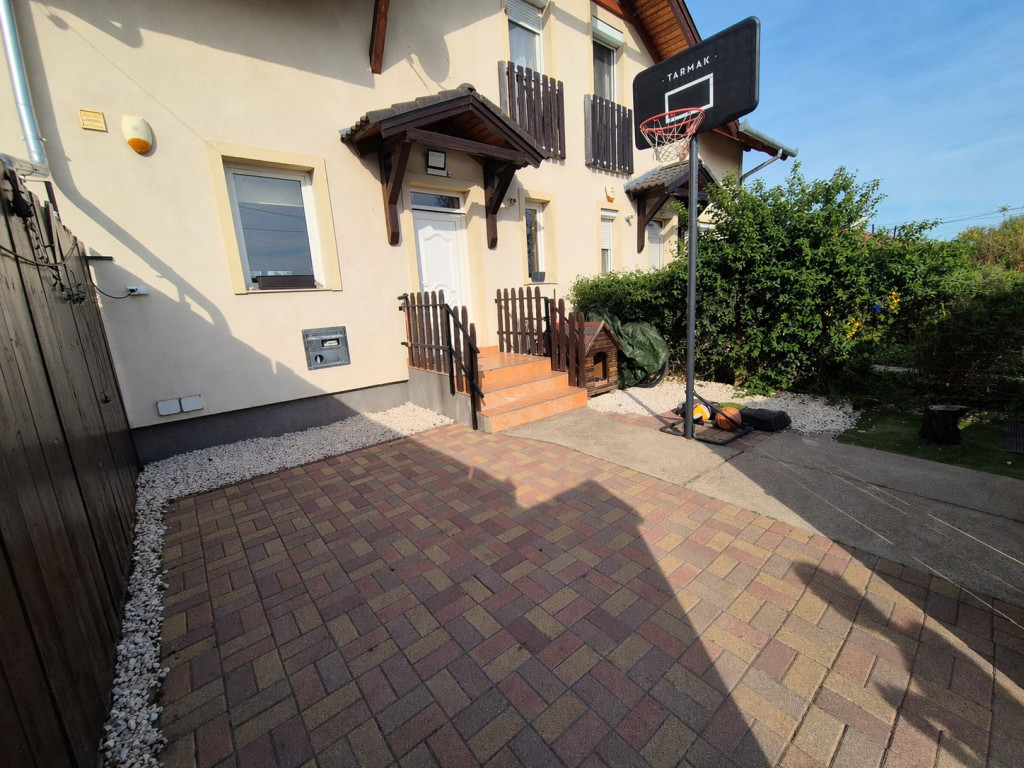 PARKOLÁS: Tolókapun keresztül telken belül 1 autó számára gépkocsibeállás biztosított a térburkolattal fedett előkertben. Ház előtti további 2 autó parkolása megoldott.