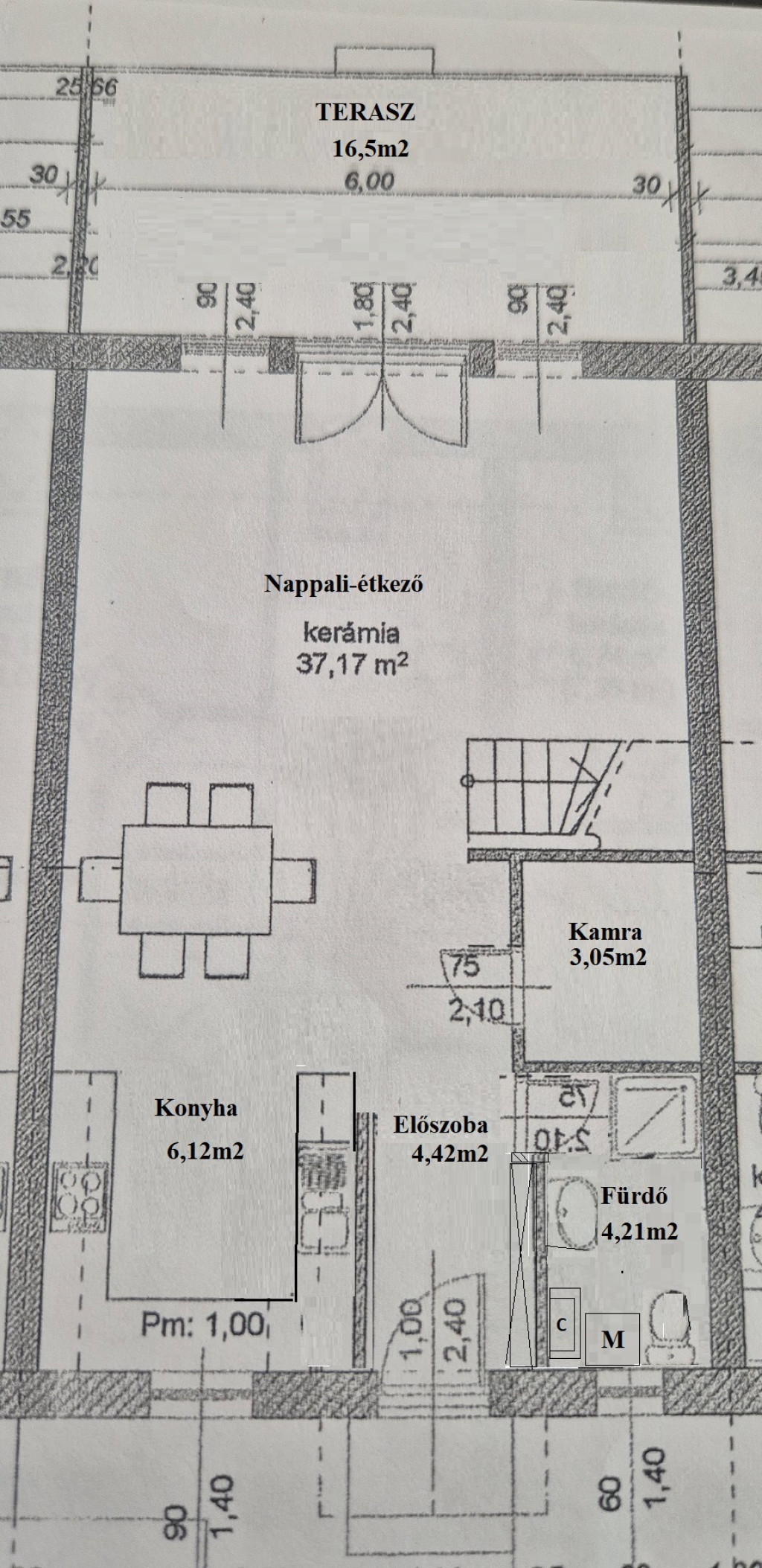 - KÖRÍTŐ FALAZAT: 38cm-es téglából épült (ami ma egy 30cm Porotherm tégla + 5cm dryvit szigetelésnek felel meg)