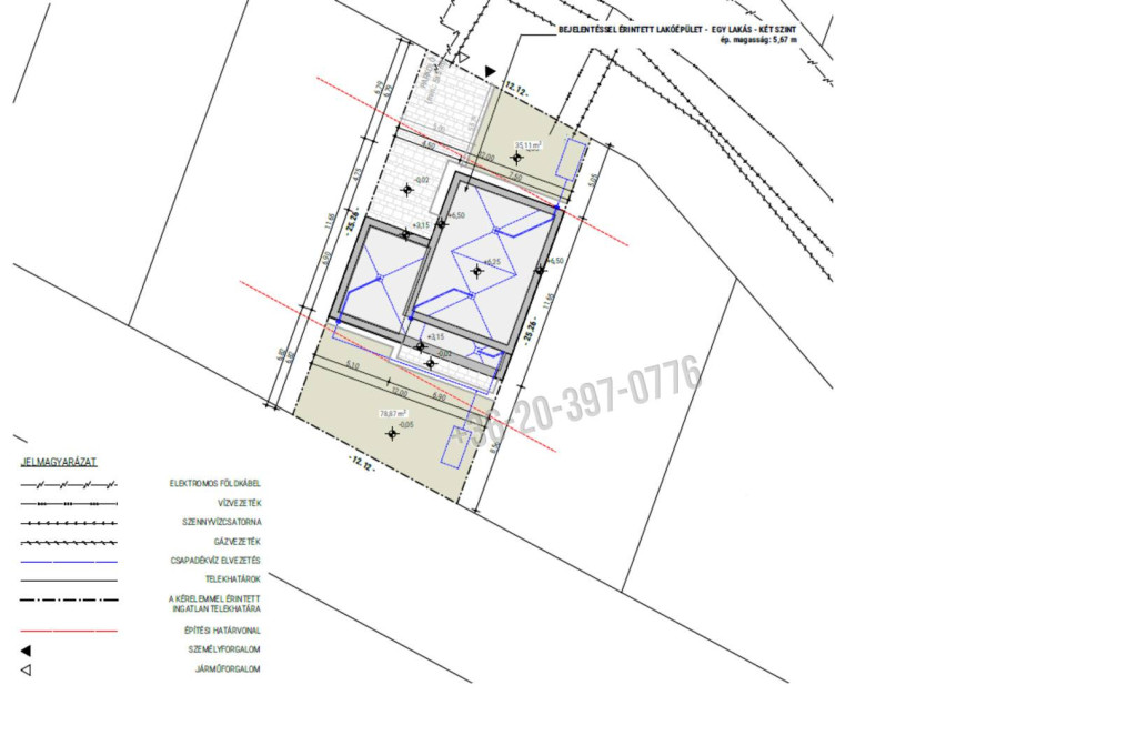 A beruházás keretében 8 db lakóház épül egymás szomszédságában. A lakóházak önálló helyrajzi számmal rendelkeznek, nem társasházi formában kerülnek kialakításra.