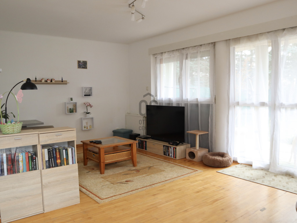 A lakás földszintjén előszoba, konyha, étkező, nappali, egy hálószoba, egy kisebb fürdőszoba, kazánház, kamra és tárolóhelyiségek kaptak helyet. A nappaliból és az étkezőből jutunk a két teraszra, onnan pedig a kizárólagos használati joggal rendelkező, jól szeparált, 542 nm-es parkosított kertbe.