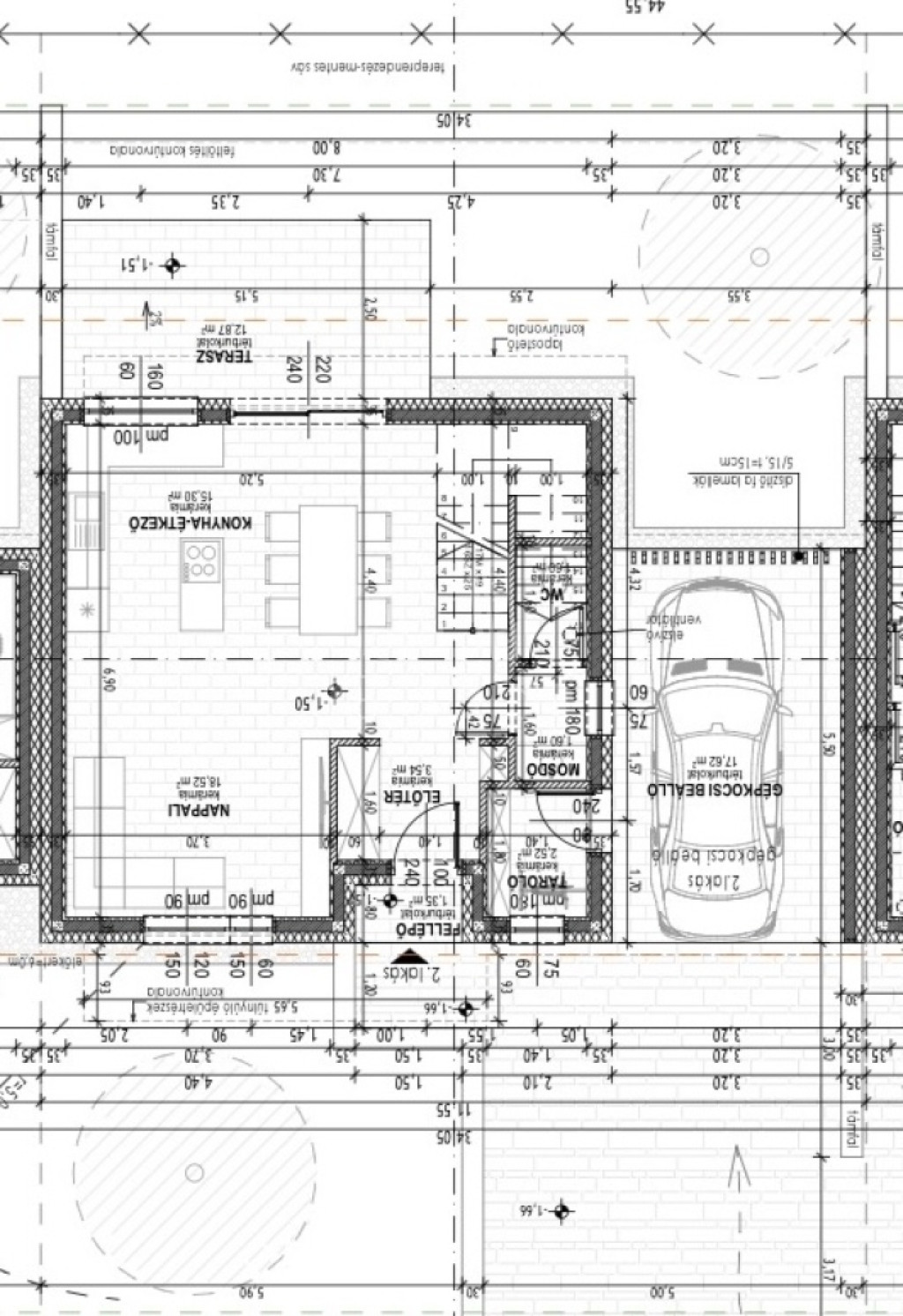 • Fedett gépkocsi-beálló: 17,62 m²