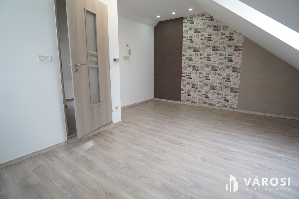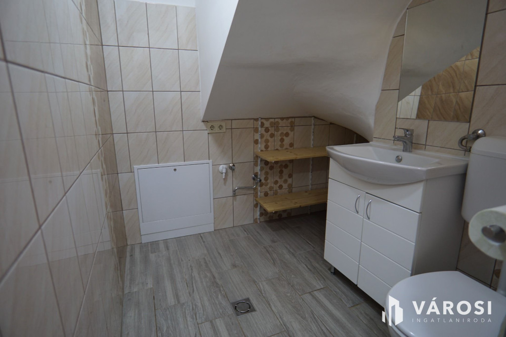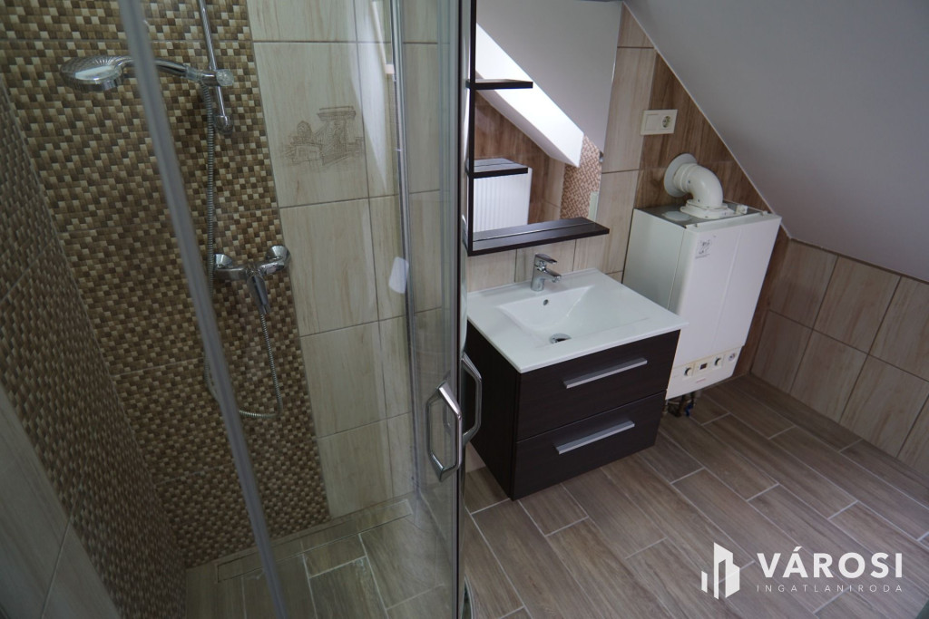 Tetőér: közlekedő, szoba, zuhanyzós fürdő mellékhelységgel együtt.