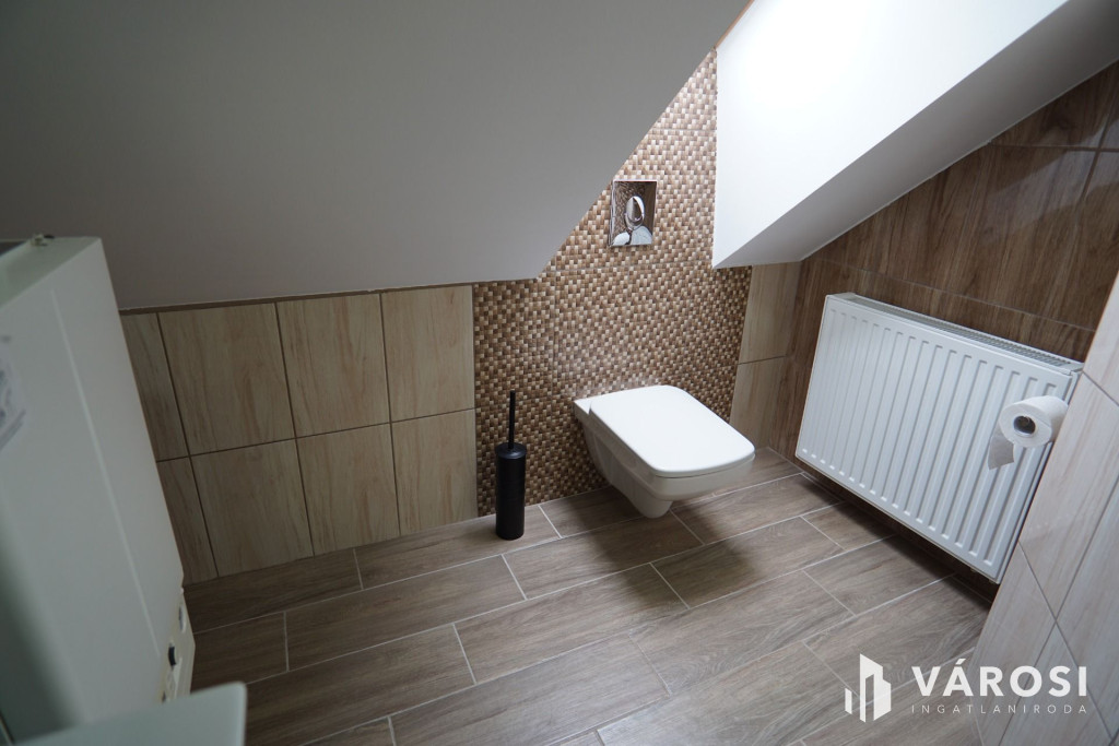 Emeleti szint: közlekedő, szoba erkélykapcsolattal, nagy szoba (igény szerint 2 szobára alakítható), zuhanyzós kádas fürdő mellékhelységgel együtt.