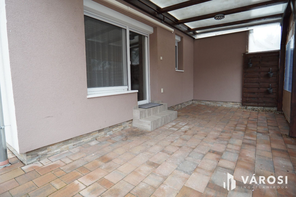 Az udvarban mediterrán stílusú térkő került lerakásra, melyen az elektromos kapuknak köszönhetően komfortos a gépkocsival való közlekedés. Az autó tárolására egy szintén felújított garázs áll rendelkezésre. A megközelítőleg 600m2-es udvar, szépen parkosított, ahol egy fúrt kút és egy tároló is kialakításra került.