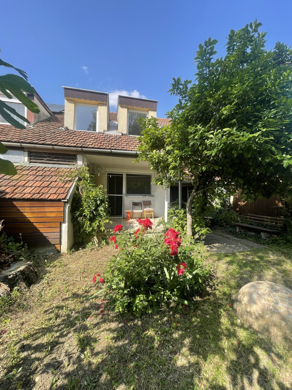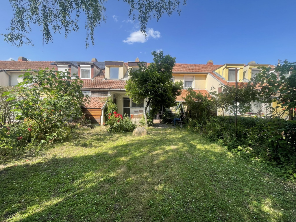 A belső privát kert összesen: 110 m², melyen a 10 m² terasz mellett szerszámos kamra, kis játszótér, grillezési lehetőség is van. Gyümölcs és díszcserjék biztosítják az intimitást és a kikapcsolódást.