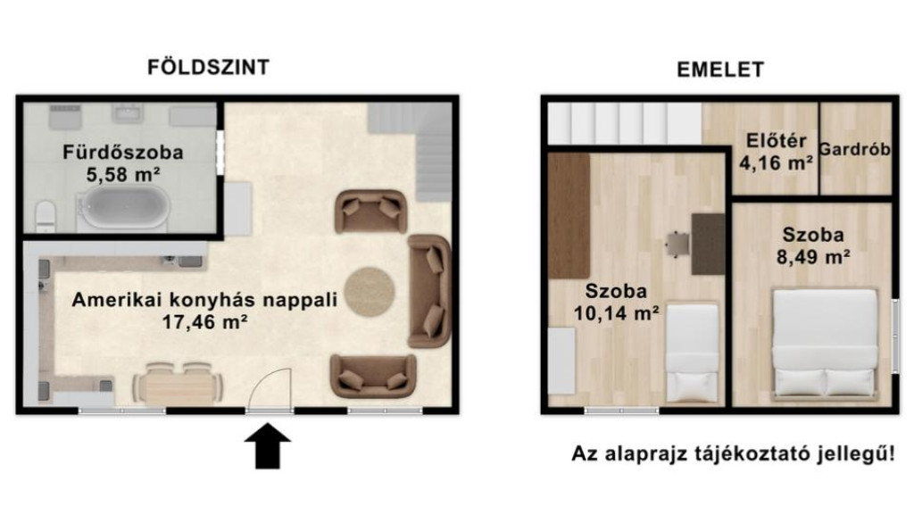 Az emeleten két külön hálószoba, valamint egy gardrób biztosítja a kényelmes mindennapokat.