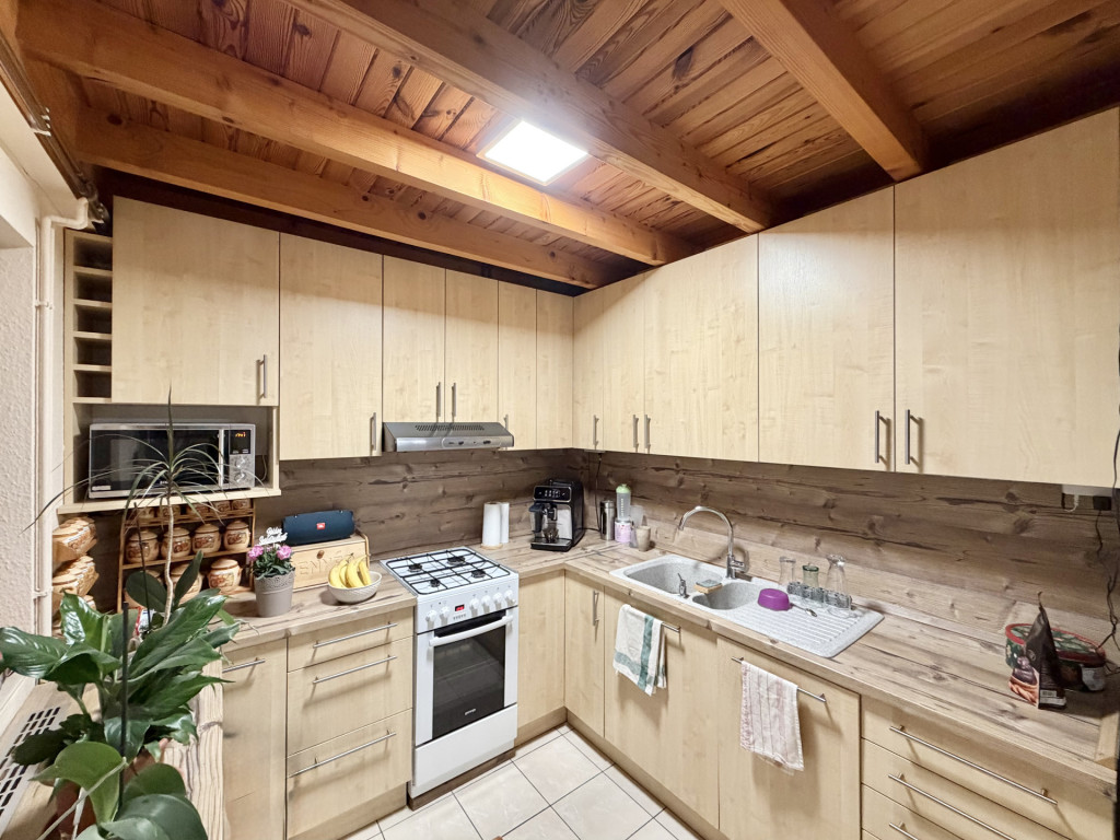 A 2007-ben épült lakás praktikus kialakítású. Az alsó szinten egy világos nappali és azzal egy légtérben kialakított, modern, egyedi tervezésű konyha, valamint egy esztétikus fürdőszoba kapott helyet.