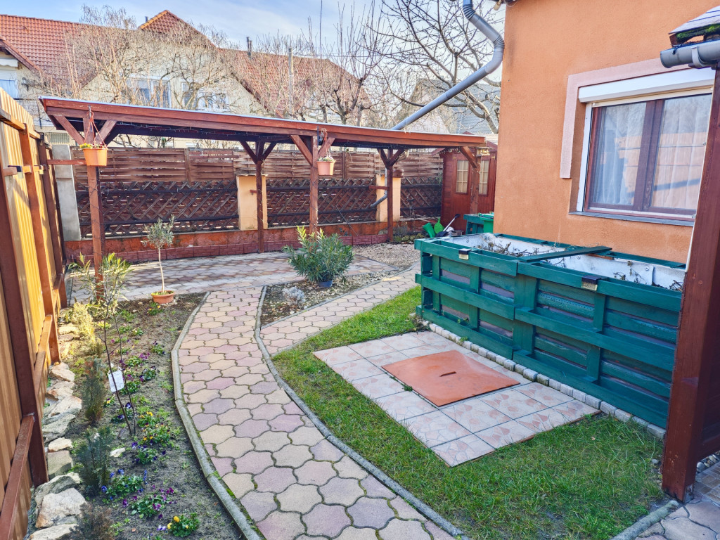 A lakáshoz tartozik, közel 110 m²-es, teljesen privát kert, mely ideális pihenésre és kikapcsolódásra.