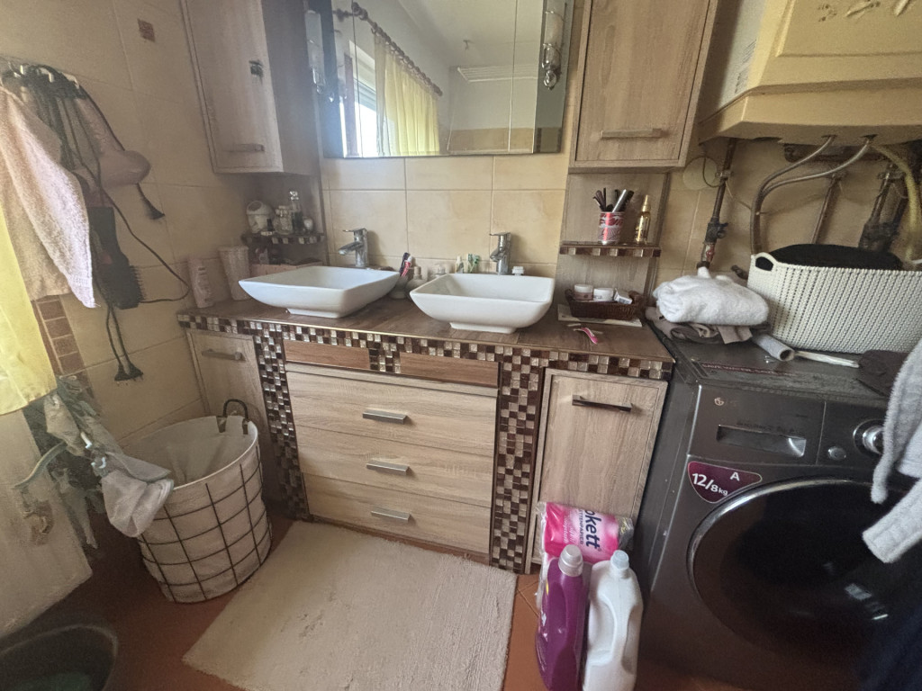 A korábbi garázs átalakítása már megtörtént, az új konyha kialakítása folyamatban van, így az új tulajdonos saját ízlésére formálhatja a befejezést, ritka lehetőség, hogy egy majdnem kész otthont a saját elképzeléseid szerint alakíts tovább. Parkolás a ház elött térkövezett részen megoldott.