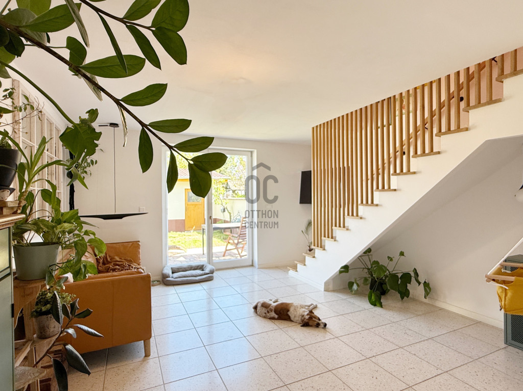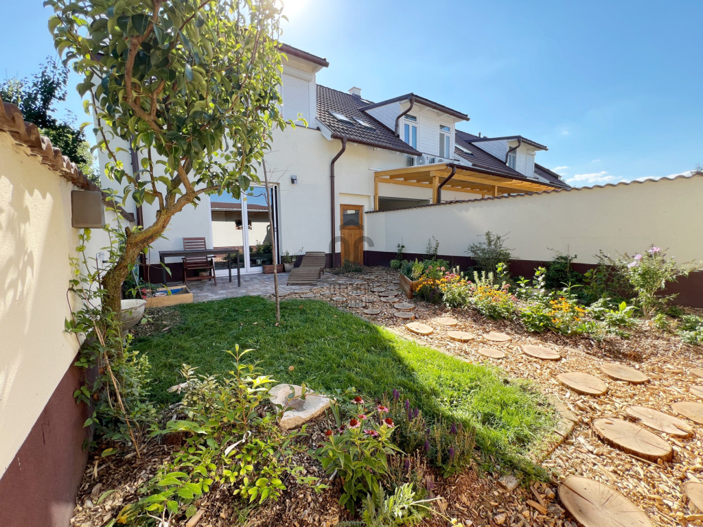 Eladásra kínálunk egy 2023-ban épült, modern emeletes sorházat Burgundia városrészben, saját elő- és hátsó kerttel. Az ingatlan egy zsákutcában található, közvetlenül a Ligeti-tó és a kerékpárút mellett, a Duna és az ártéri erdő közelében, így nyugodt, természetközeli környezetben kínál otthont, ugyanakkor könnyen megközelíthető marad.A ház kialakítása kifejezetten családok számára ideális. A földszinten tágas nappali, konyha-étkező kamrával, valamint külön WC kapott helyet, az emeleten pedig két hálószoba és egy félszoba – jelenleg gyerekszobaként használva – található. A fürdőszoba szintén az emeleten került kialakításra. A tárolási lehetőséget padlás, hőszigetelt tetőtér és külön kertitároló biztosítja, emellett műhely is tartozik az ingatlanhoz.
