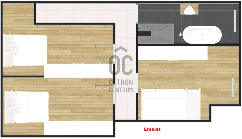 (Az ingatlan tulajdoni lap szerint 2 szobás, 74 nm-es)