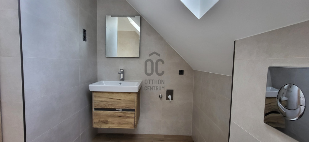 A tetőtérben két hálószoba , közlekedő és egy zuhanyzó+WC található.