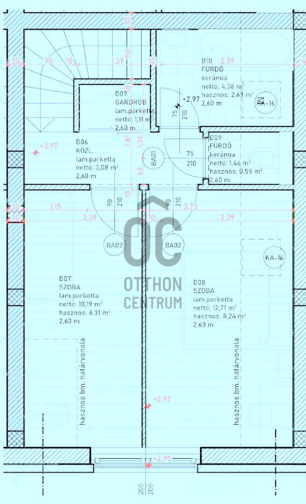 - 96 nm-es. Földszinten 1 háló, konyha-étkező, kertkapcsolatos nappali, fürdő+WC és tároló. Tetőtérben 2 háló, dolgozószoba, és fürdő.