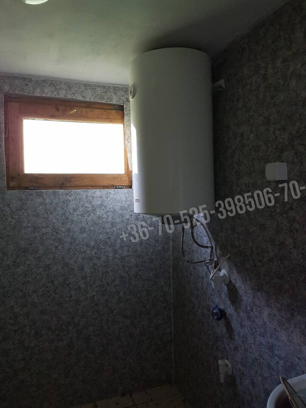 A víz fúrt kútról megy házi vízművel. A szennyvíz derítőbe ürül.