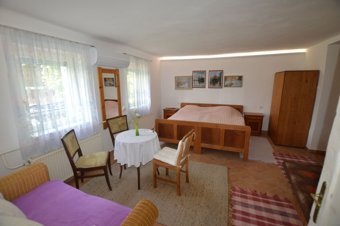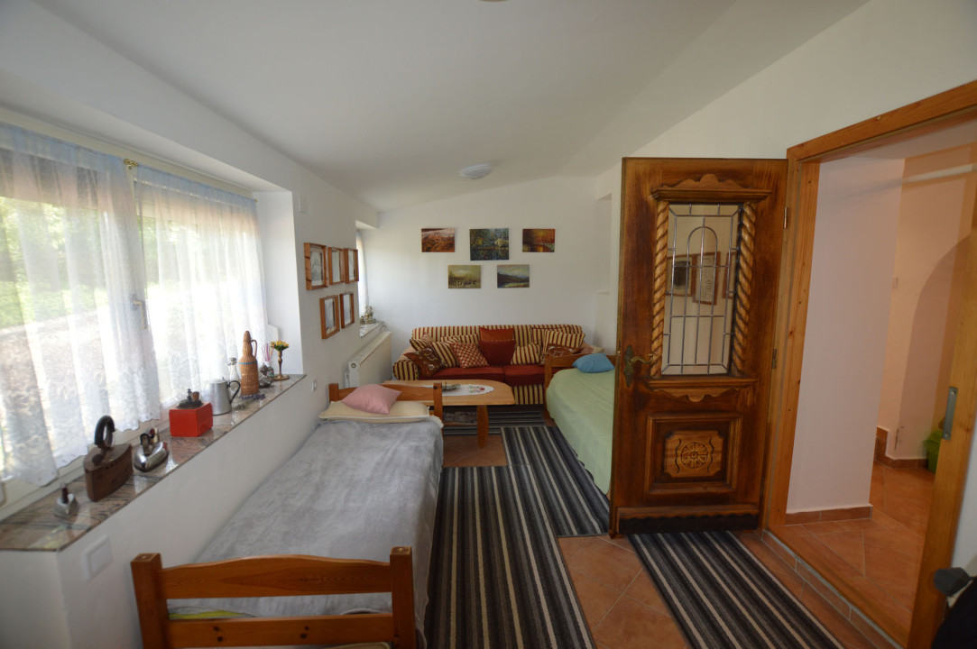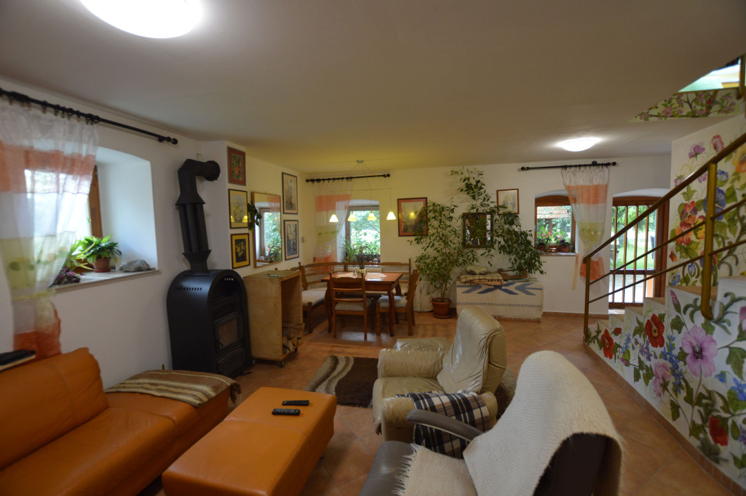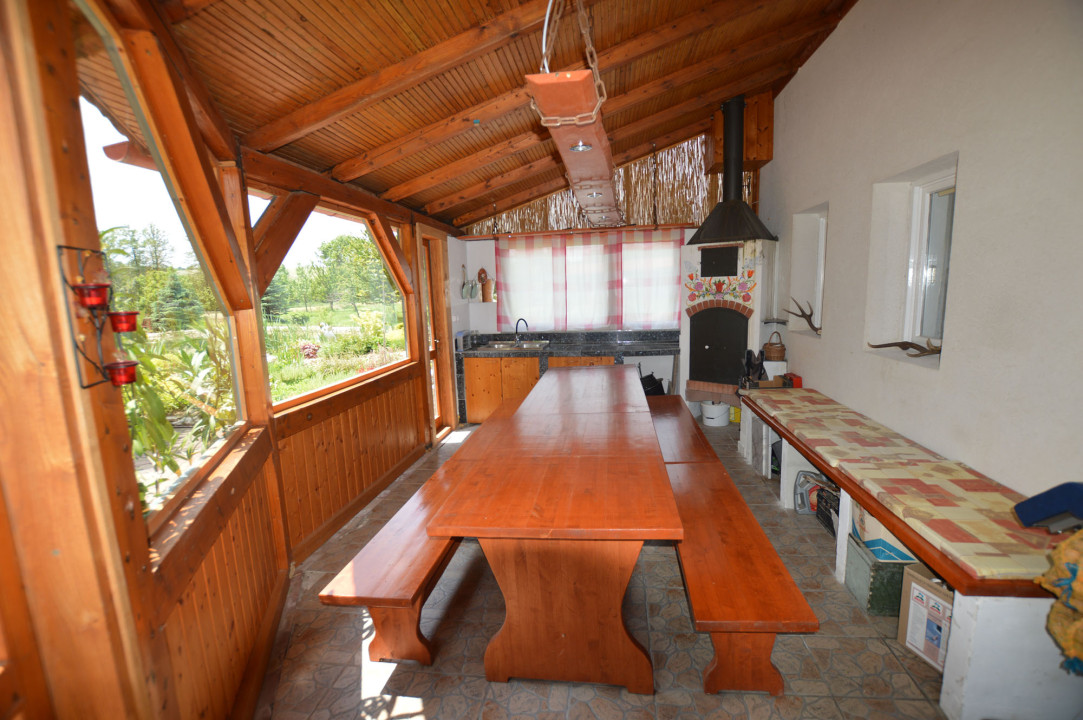Falusi turizmusra, lovasturizmusra, gyógyászati turizmusra alkalmas önfenntartó tanya a Bakony alján eladó 5 külön bejáratú lakrészt magában foglaló lakóházzal és 9,1 ha művelt területtel. Veszprémtől 17 km, a Balatontól 30 km, Budapesttől 130 km távolságra található. Csaknem végig aszfaltos úton közelíthető meg, az utolsó 200 m is jól beállt, murvával felszórt út. A jelenlegi tulajdonosok megteremtették egy panzió alapjait, melyet az új tulajdonos saját elképzelései szerint továbbfejleszthet. Alkalmas lehet falusi turizmusra, gyógyászati turizmusra, lovasturizmusra, vendéglátásra. De növénytermesztésre, állattartásra is. Az épület mögötti terület pedig lótartásra is hasznosítható. A világ elől való elbújásra, ihletmerítésre is remek ez a tiszta levegőjű, inspiráló természeti környezet két patak ölelésében. Jó minőségű földek veszik körbe. A szántók nagy része jelenleg lucernával beültetett, 6 éve nem permetezték, a megfelelő tanúsítások után biogazdálkodás is folytatható rajta. A vizet saját, ivóvíz minőségű kút biztosítja, de a vízvezeték vége is a területen van, tehát a vezetékes víz is bevezethető. Az ingatlan 3 x 32 A áramerősséggel rendelkezik. A 10 kW-os napelemrendszer azonban a teljes áramfogyasztását fedezi, sőt plusz áramot visszatermel a rendszerbe. A szennyvíz tárolása a 3 részes zárt szennyvíz-tárolóban megoldott. A jelenlegi épületet a Séd patak mentén található malmok egyikéből alakították ki ráépítéssel, bővítéssel. Az eredeti épület 1854-ben épült. A kő határoló falak a földszinten 1 m vastagok, a válaszfalak 55 cm-esek. További szerkezetek: két vasbeton koszorú, vasbeton födém, fa tetőszerkezeten cserépfedés, hőszigetelt fa külső nyílászárók, egyedi fa belső ajtók. A felújítás során megőrizték az egykori épületbelső hangulatát, de korszerű anyagokból egy modern otthont alakítottak ki benne. A teljes körű felújítás 2009-től folyamatosan zajlik. A tetőtéri külön bejáratú lakás jelenleg tornateremként funkcionál vizesblokkal, de könnyen visszaalakítható nappali+2 hálószobás lakássá. A hasznos lakótér 323 m2. A földszinten van egy étkezőn keresztül megközelíthető 3 szobás lakás: 16 férőhelyes étkező kemencével, 4 szoba, konyha, WC, 2 fürdőszoba, illetve a külön bejáratú tulajdonosi lakrész fsz-i része: nappali, konyha, WC, tároló, valamint a tetőtéri rész: társalgó, 2 hálószoba, fürdőszoba, festőműhely. Az épület alatt egy kéthelyiséges, 41 m2-es pince található, ahol a 40 kW-os vegyes tüzelésű, öntöttvas kazán is helyet kapott. Fűteni ezzel a kazánnal radiátor hőleadókon keresztül lehet, ezen kívül 8 db hűtő-fűtő Gree klímával, egy cserépkályhával, egy 9 kW-os öntöttvas kandallóval és egy 9 kW-os Wamsler sparhelttel. A meleg vizet villanybojler szolgáltatja, az internet és TV vételi lehetőség is megoldott. A házhoz tartozó terület 6131 m2. A hátsó részén található a 30 x 9 m méretű istálló, mely jógateremként szolgál. A ház előtti részen a patak vize táplálta vízi édent alakítottak ki, mely két tóból áll, köztük romantikus utacskákkal, napozóhelyekkel és rengeteg virágzó és zöld növénnyel nagy fák árnyékában. Ezen kívül több termő gyümölcsfa van: meggy, cseresznye, körte, alma, szilva és 7 diófa, valamint málna és ribizli. A hozzátartozó területek a fent említett lucernával beültetett szántók, illetve egy erdőterület tartozik még hozzá. A birtok tulajdonosai a patakból vízvételi engedéllyel rendelkeznek, a mellékágon pedig saját zsilipük van. Önfenntartó, egyedi ingatlan egyedi igényekre a természet lágy ölén, de közel a civilizációhoz. Ha Ön ilyen életmódra vágyik, jöjjön és nézze meg, hátha beleszeret…. Részletekért, további információért keresse Magasmarti Anikót a Csudijó-Stúdió Kft-nél.