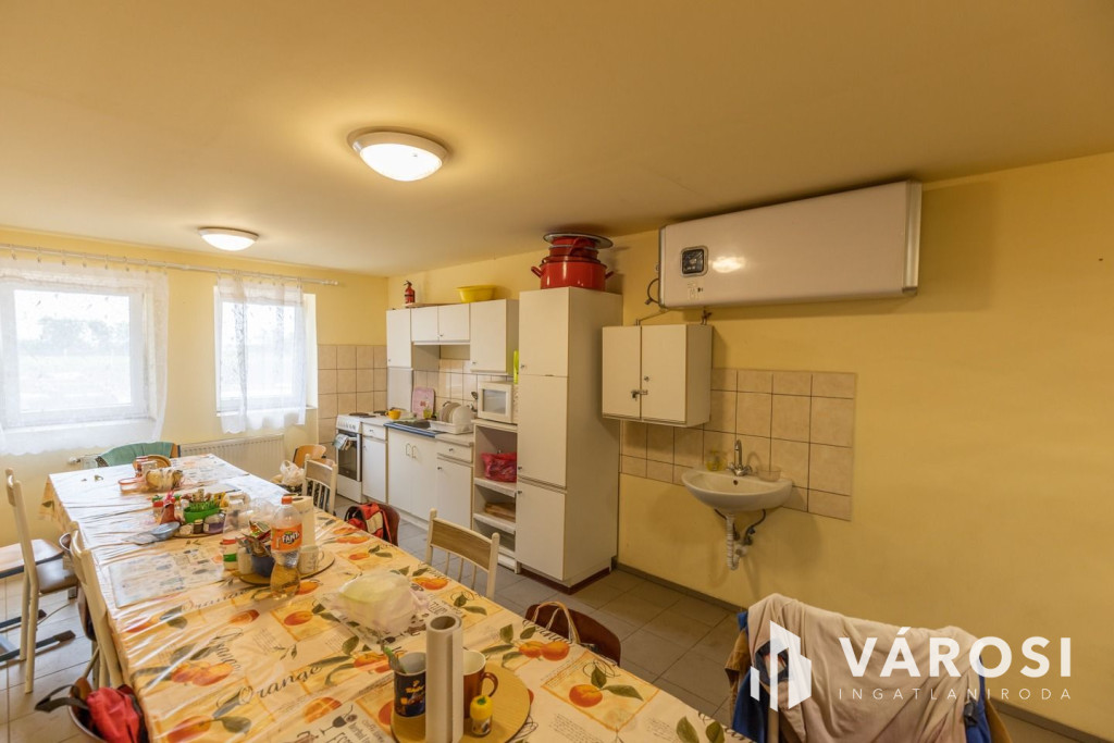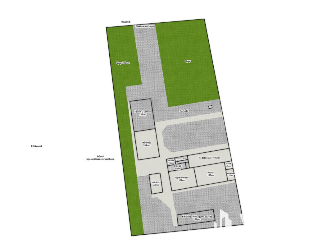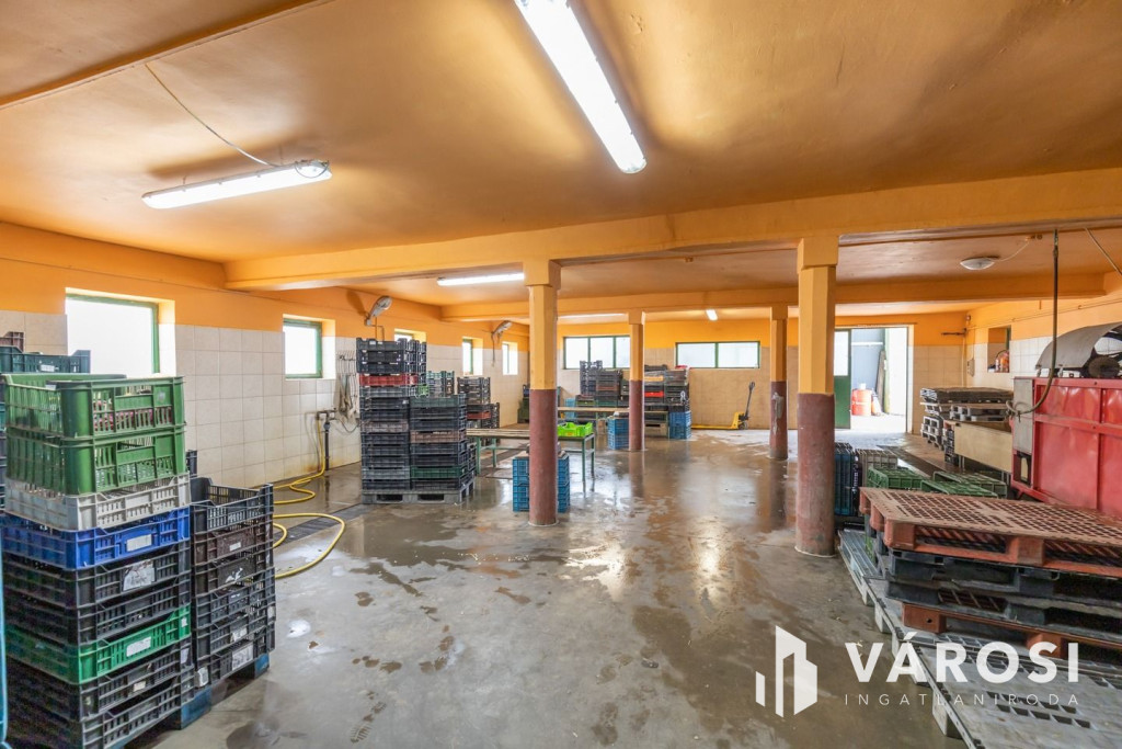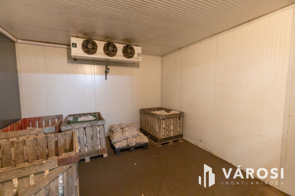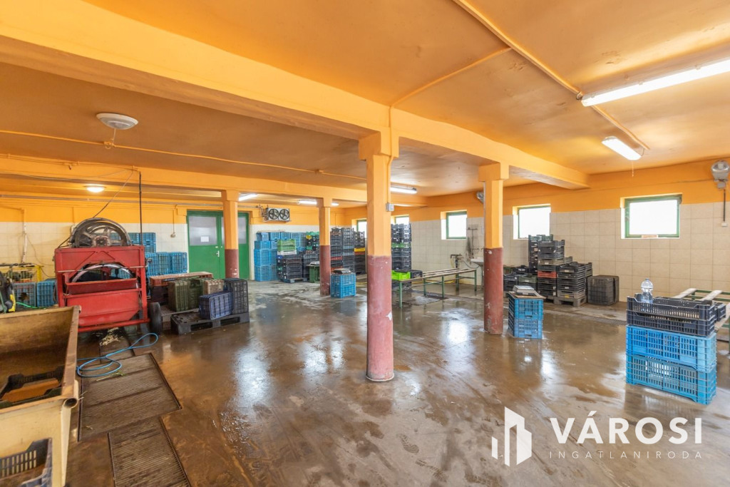 - a főéépület áll egy fedett, de nyitott előtérből (196nm), egy 154nm-es gyökérmosó helyiségből, egy 198nm-es raktárból, 13nm-es irodából és egy 32nm-es kazán helyiségből. Ennek a főépületnek a padlása is járható, külső lépcsőn keresztül megközelíthető, le van szigetelve a tető felől, ventilátorokkal ellátott, ez jelenleg fokhagyma tárolásra van használva. Ezen kívül van egy 2016-ban épült lakó-étkező épület, ezzel a főépülettel (1970-es évek) egybe építve. Ebben egy étkező-konyha, iroda, női-férfi wc, tusoló került kialakításra.