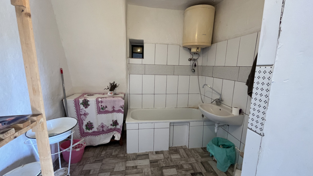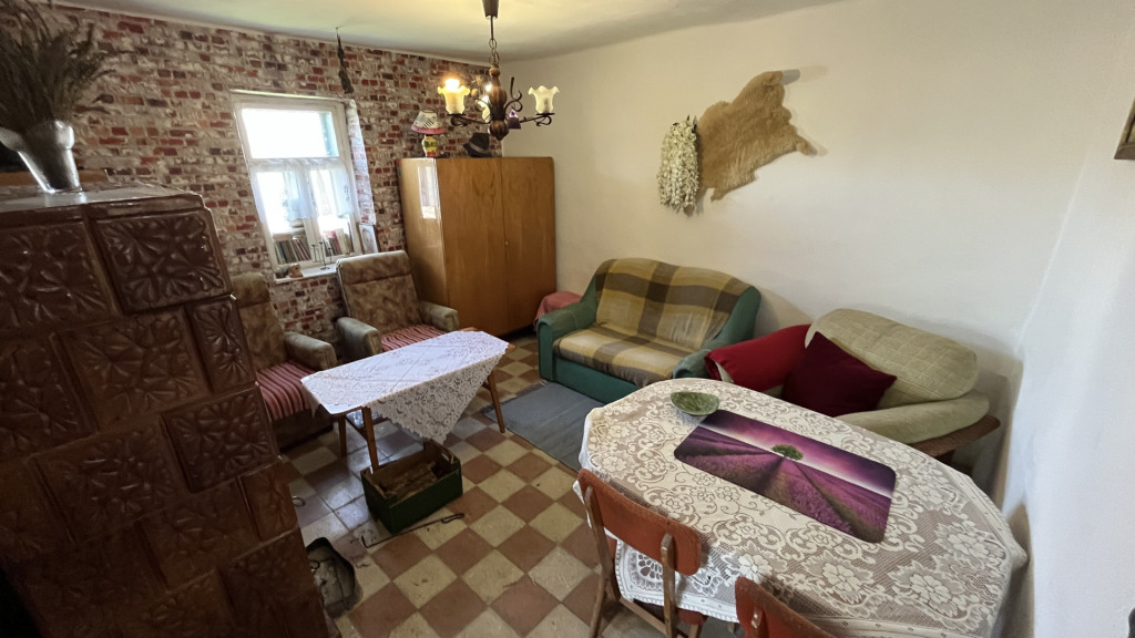 - villany közművel, fúrt kúttal, cserép kályhás fűtéssel