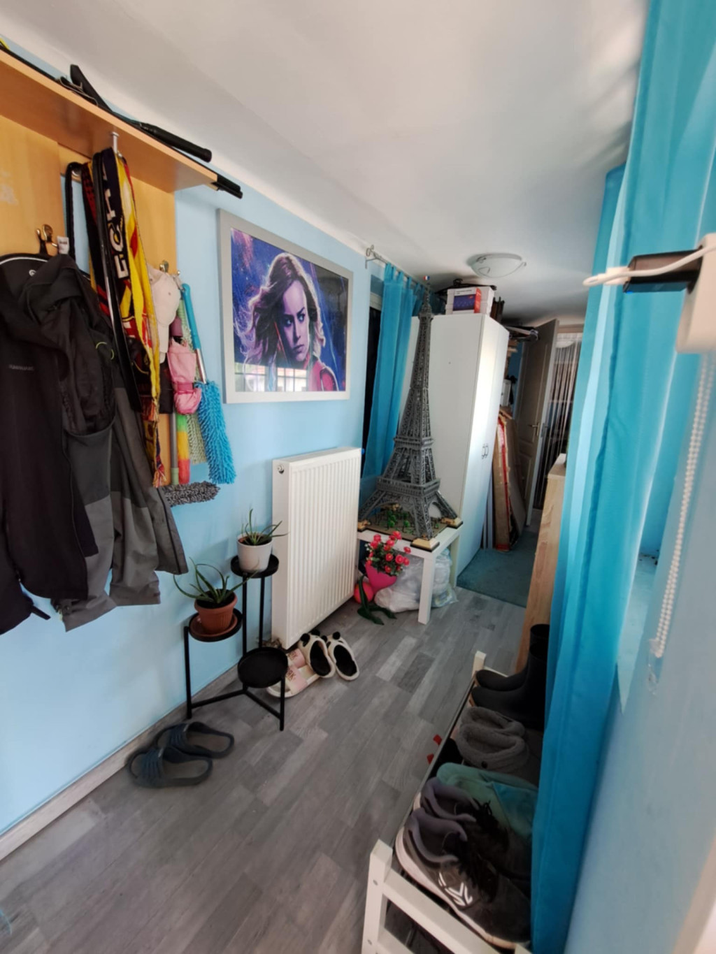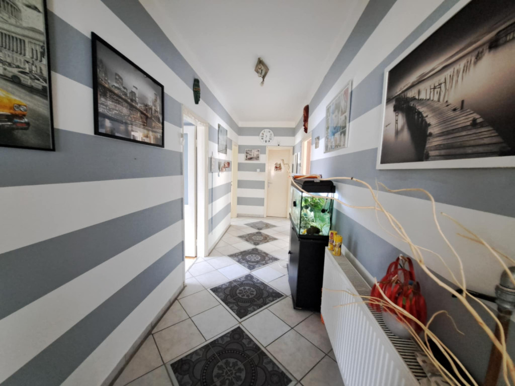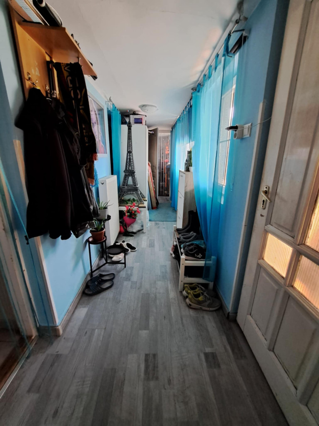 A 120 m2-es ház előteréből egy folyosóra lépünk, ahonnan két külön nyíló szoba, fürdőszoba WC-vel, konyha és a konyhából egy ablakos kamra nyílik. A ház dupla terasszal rendelkezik.