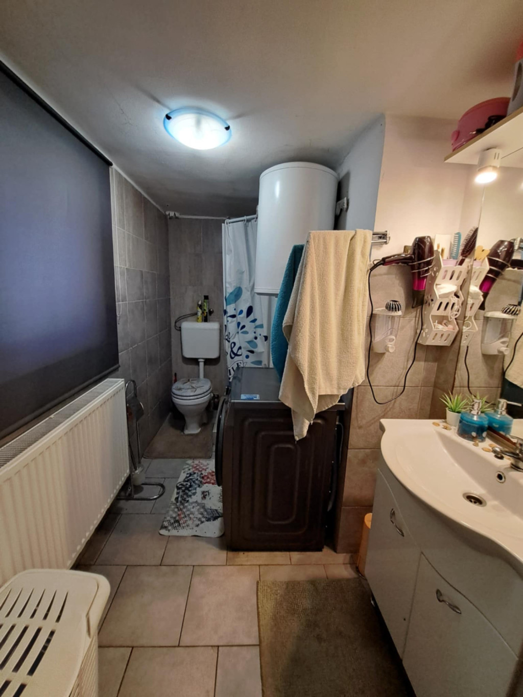 A kisebb lakóház villany és gáz almérő órákkal ellátott, melegvizét villanybojler biztosítja.