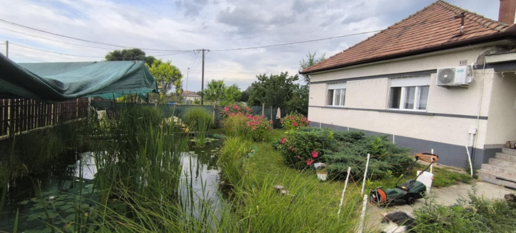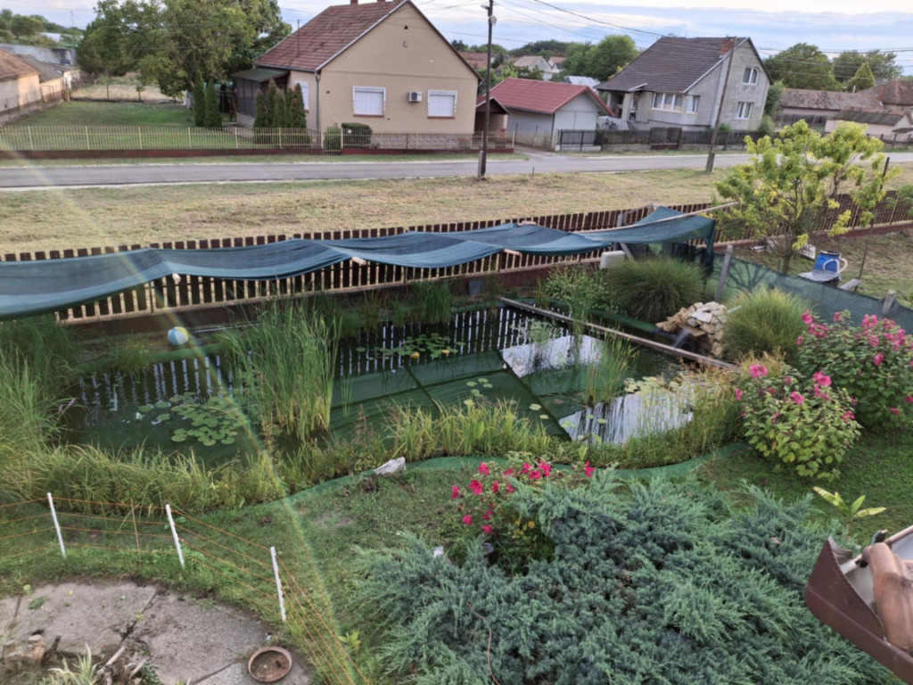 A kertet termő gyümölcsfák (szilva, többféle körte, cseresznye), árnyékot adó dió és akácfák, valamint egy 50 m3-es halakkal telepített tó díszíti. A kert öntözése fúrt kútról megoldható.