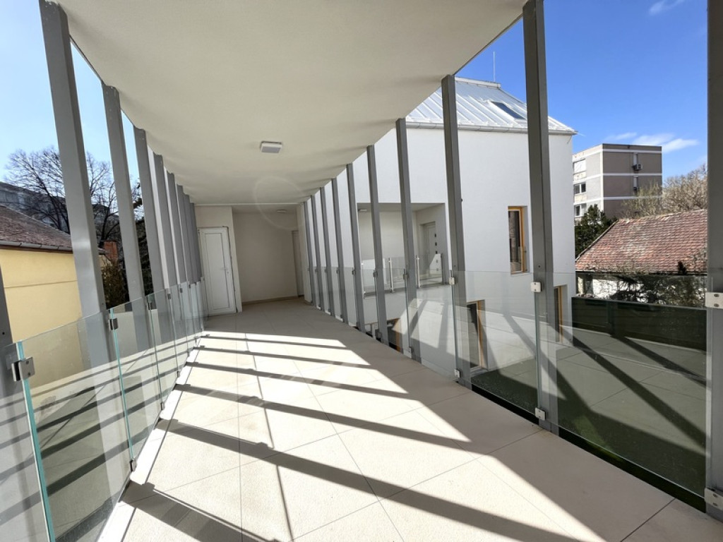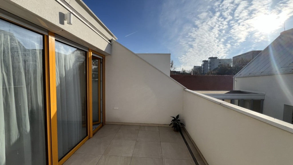 A belső udvarra néző loggia csendes, nyugodt hangulatot biztosít, kellemes kiegészítő életteret adva a lakáshoz.