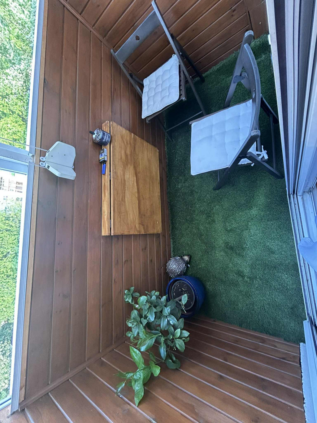 A hangulatos, műfüves erkély tökéletes helyszín a reggeli kávé elfogyasztásához vagy egy hosszú nap utáni kikapcsolódáshoz. A magas minőségű burkolatok, a műanyag nyílászárók és a redőnyök tovább emelik az ingatlan színvonalát.