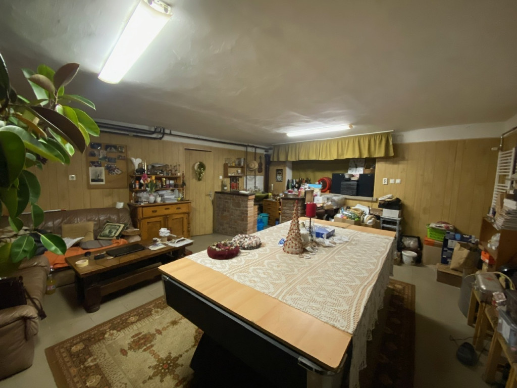 Földszint: külön helyrajzi számmal rendelkező, 34 m²-es helyiség (jelenleg szabadidős szoba, nyilvántartás szerint műhely), amely igény esetén üzlethelyiséggé alakítható