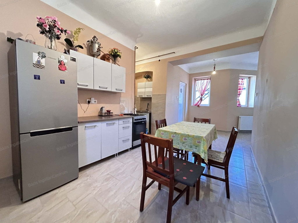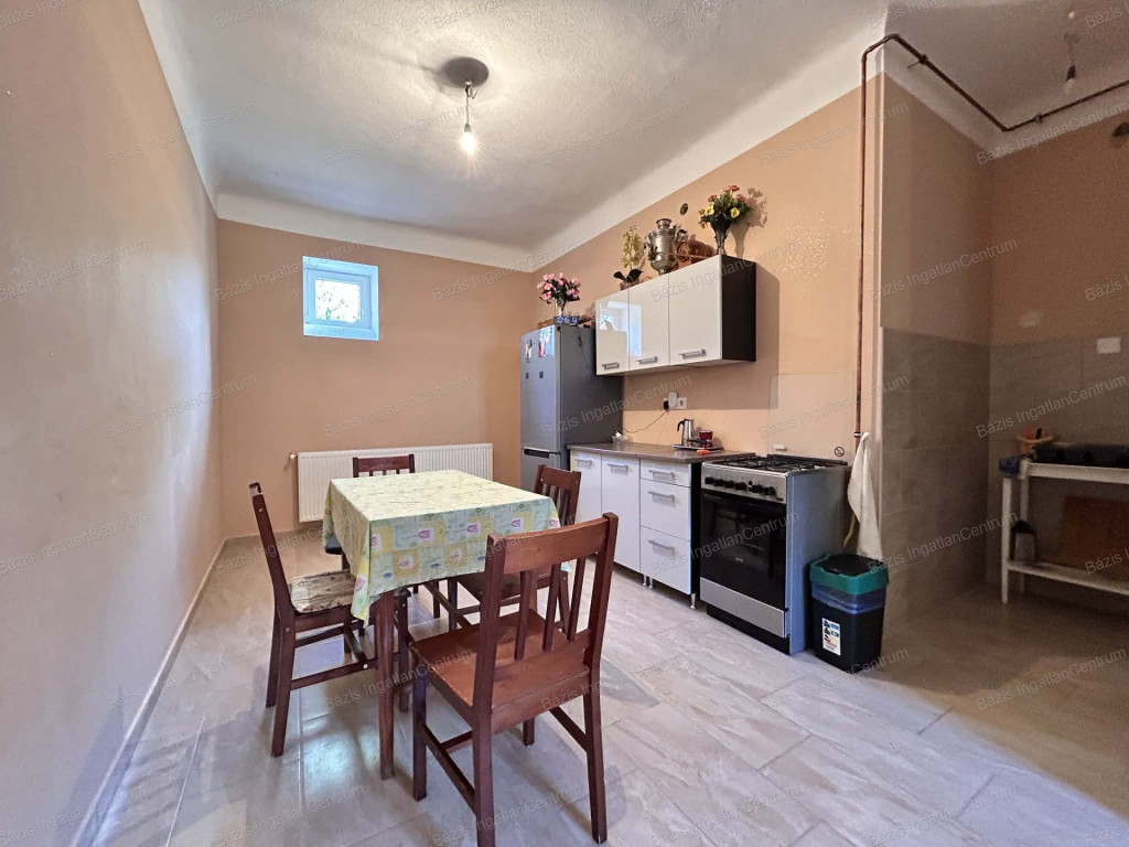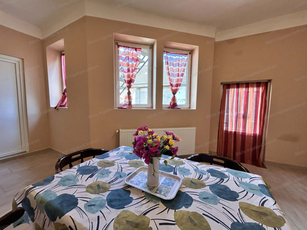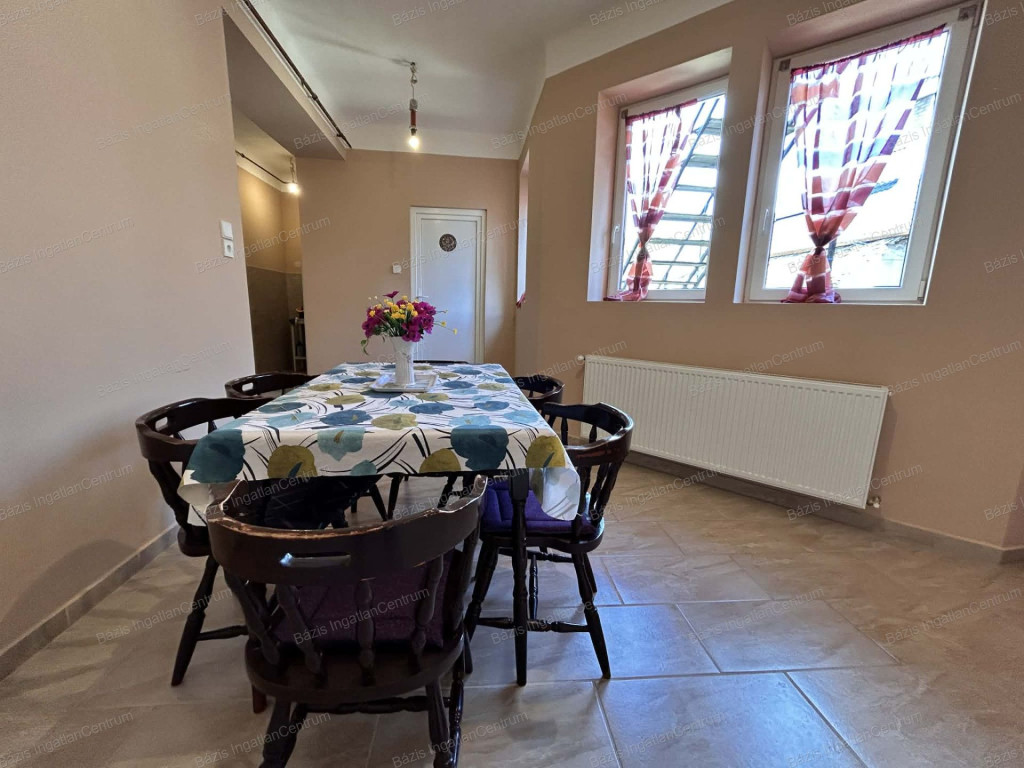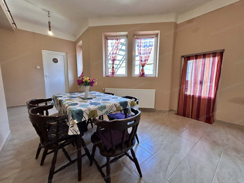 Bács-Kiskun megye Baja alvégi részén 2025-ben belül felújított, 100 nm-es, 3m belmagasságú, 2 lakásos családi ház egyik lakása eladó. Az ingatlan vegyes falazattal és fa födémmel épült a 70-es években. A 100 nm-es földszinten található egy világos nappali, étkező, konyha, WC, fürdőszoba, közlekedő és kettő hálószoba. A 60 nm-es, külső falon lévő feljárón megközelíthető tetőrészben kettő szoba, WC és konyha alakítható ki. A fűtésről kondenzációs kazán gondoskodik. A világos, jó elosztású családi ház járólapos és laminált burkolattal van ellátva, nagy részben hőszigetelt nyílászárók kerültek beépítésre, minden burkolat új, a vakolat, a festés, a földszinti víz-, villanyvezetékek és firelé újak. Az ingatlan még egy lakással közös kapubejáróval rendelkezik, az udvar közös, de van használati megosztás. A ház akár befektetési célból, illetve több generáció számára is kiváló választás lehet.Vevő ügyfeleinket díjmentes hitel tanácsadással és teljeskörű ügyintézéssel segítjük az ingatlan megvásárlásában. Bővebb információért keressen telefonon!