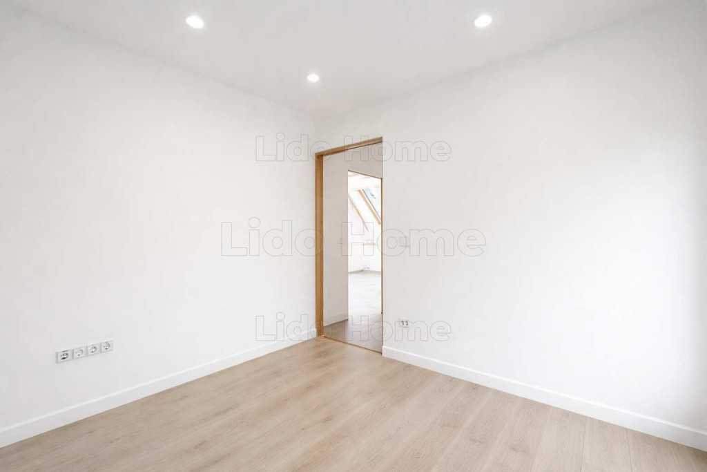 A kétszintes, mindössze négy lakásos épület tetőtéri lakása ideális méretű és elrendezésű: