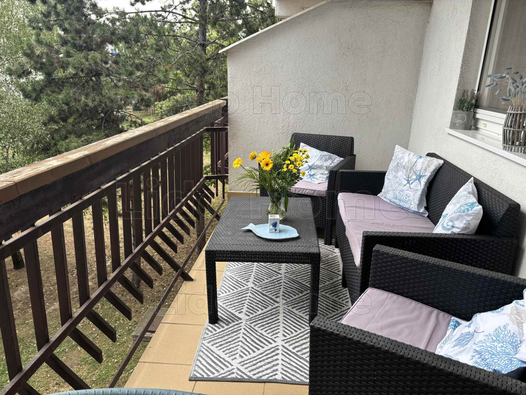 - Mindkét szobából egy 20 m²-es, fedett erkély nyílik, amely egy parkra néz, így a lakás természetközeli, nyugodt hangulatot áraszt – ideális reggeli kávézáshoz vagy esti pihenéshez.