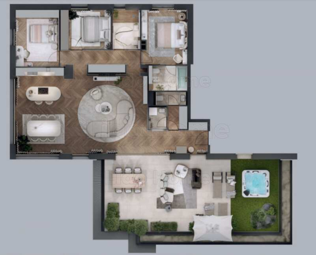 -A szobákban, nappaliban laminált parketta, a vizes helyiségekben a falon és a padlón egyaránt hidegburkolat került betervezésre.