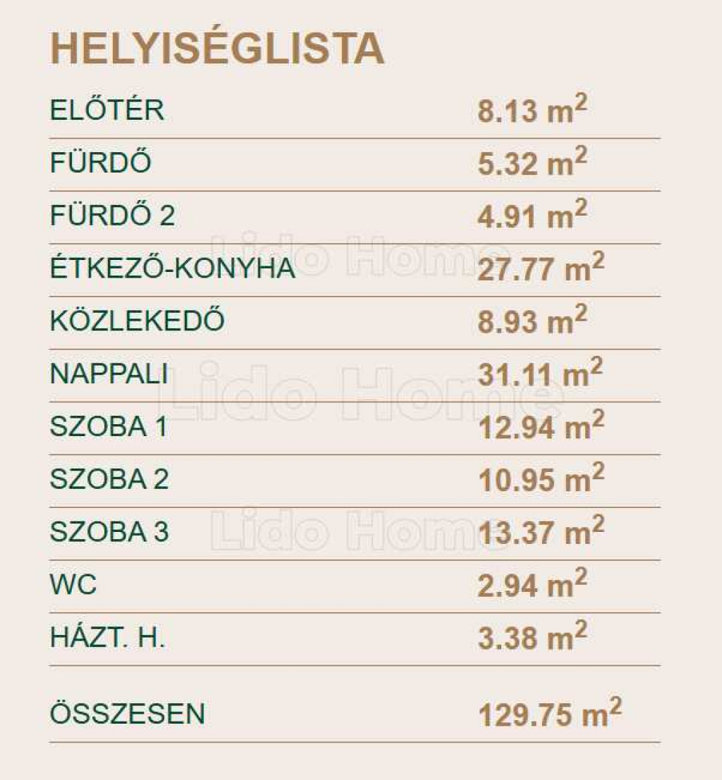 -A szobákban, nappaliban laminált parketta, a vizes helyiségekben a falon és a padlón egyaránt hidegburkolat került betervezésre.
