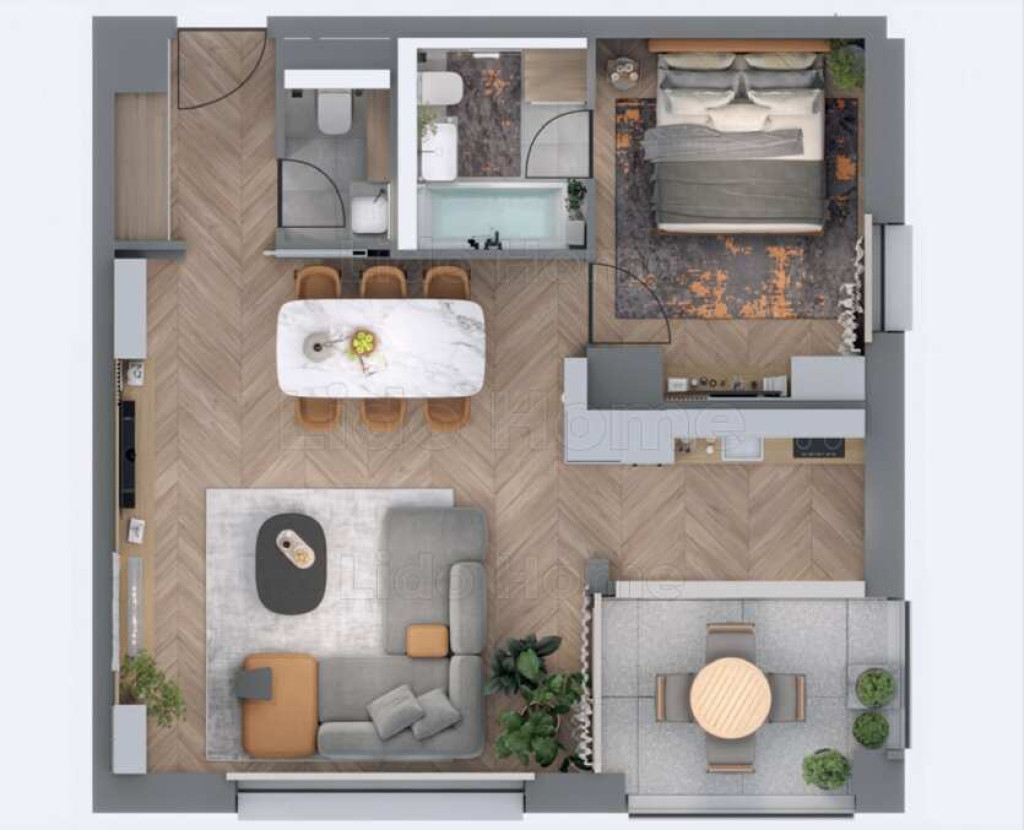 -A szobákban, nappaliban laminált parketta, a vizes helyiségekben a falon és a padlón egyaránt hidegburkolat került betervezésre.