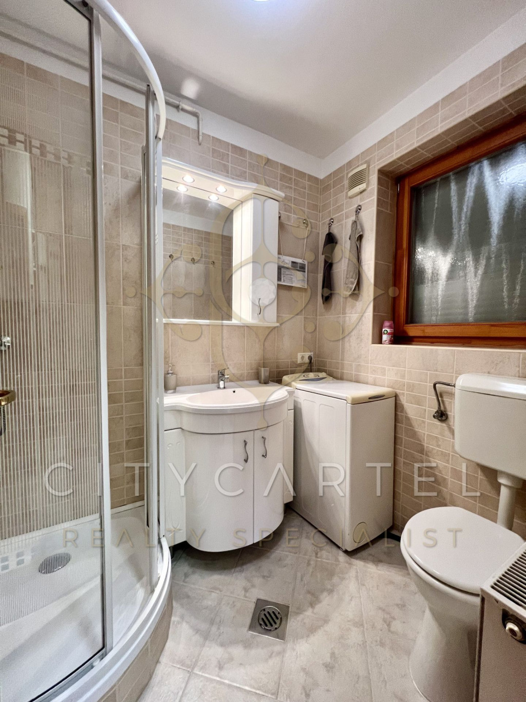 Beosztását tekintve egy amerikai konyhás nappali, egy hálószoba, egy előtér, egy WC-s, zuhanyzós fürdőszoba, valamint egy terasz került benne kialakításra.