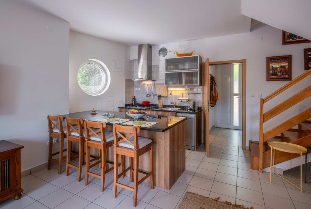 A földszinten található az előtér, amelyből egy tágas, világos nappaliba érkezünk. A nappali közvetlen kapcsolatban áll a teljesen gépesített konyhával, így ideális helyszíne lehet családi összejöveteleknek és baráti találkozóknak. Ezen a szinten kapott helyet egy zuhanyzóval és WC-vel felszerelt fürdőszoba, valamint egy külön háztartási helyiség, ahol a mosógép, a hűtőszekrény és a gázkazán is elhelyezésre került. A nappaliból nyíló, 30 m²-es terasz kiváló lehetőséget nyújt szabadtéri étkezésekre, pihenésre vagy akár napozásra, miközben a vízpart közelsége különleges hangulatot teremt.
