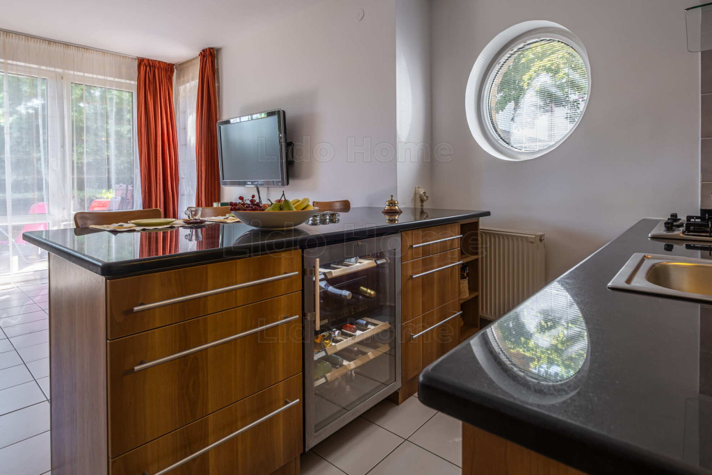 A lakás teljes mértékben téliesített, így nem csupán szezonális nyaralóként, hanem állandó otthonként is kiválóan használható. A délnyugati és északkeleti tájolásnak köszönhetően a belső terek világosak, napfényben gazdagok, ugyanakkor a nap járása egész nap kiegyensúlyozott fényviszonyokat biztosít.