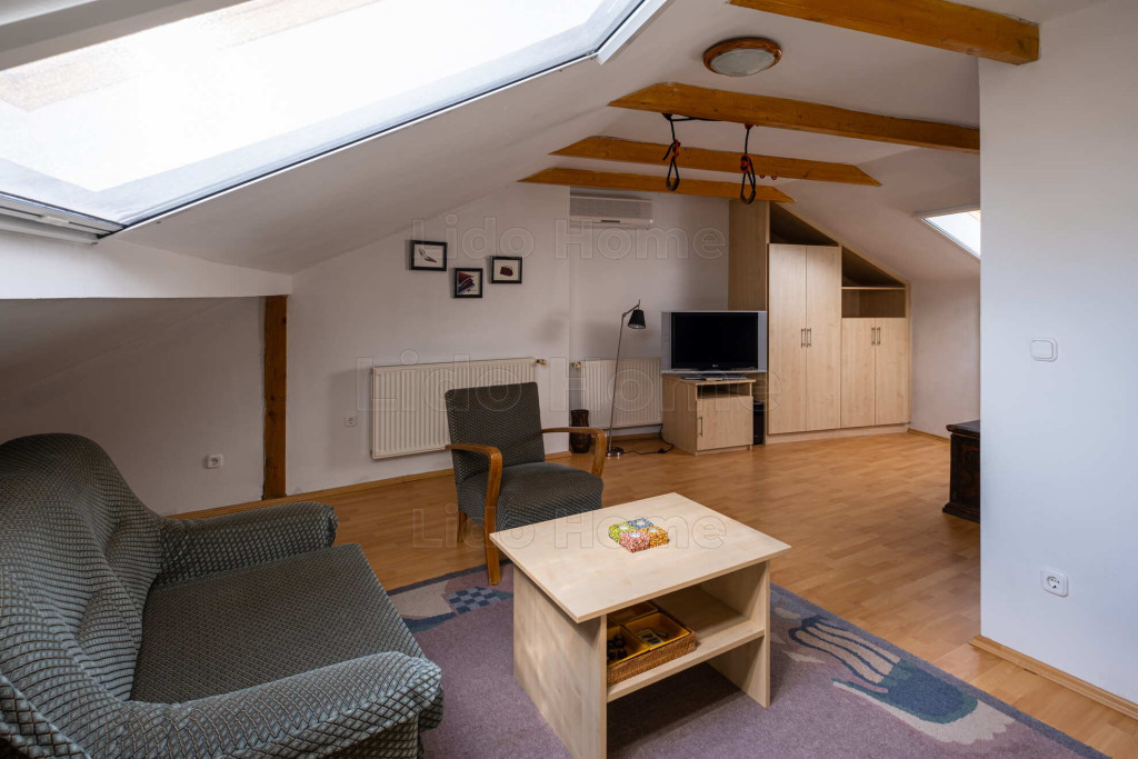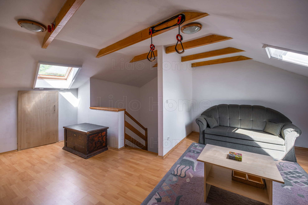 A tetőtérben egy bruttó 30 m² alapterületű, sokoldalúan alakítható helyiség található. Igény szerint két külön szobává is átalakítható, de akár egy további fürdőszoba vagy vizesblokk kialakítása is megoldható. Emellett praktikus tárolásra alkalmas padlástér is rendelkezésre áll, amely segíti a rendszerezett, kényelmes mindennapokat.