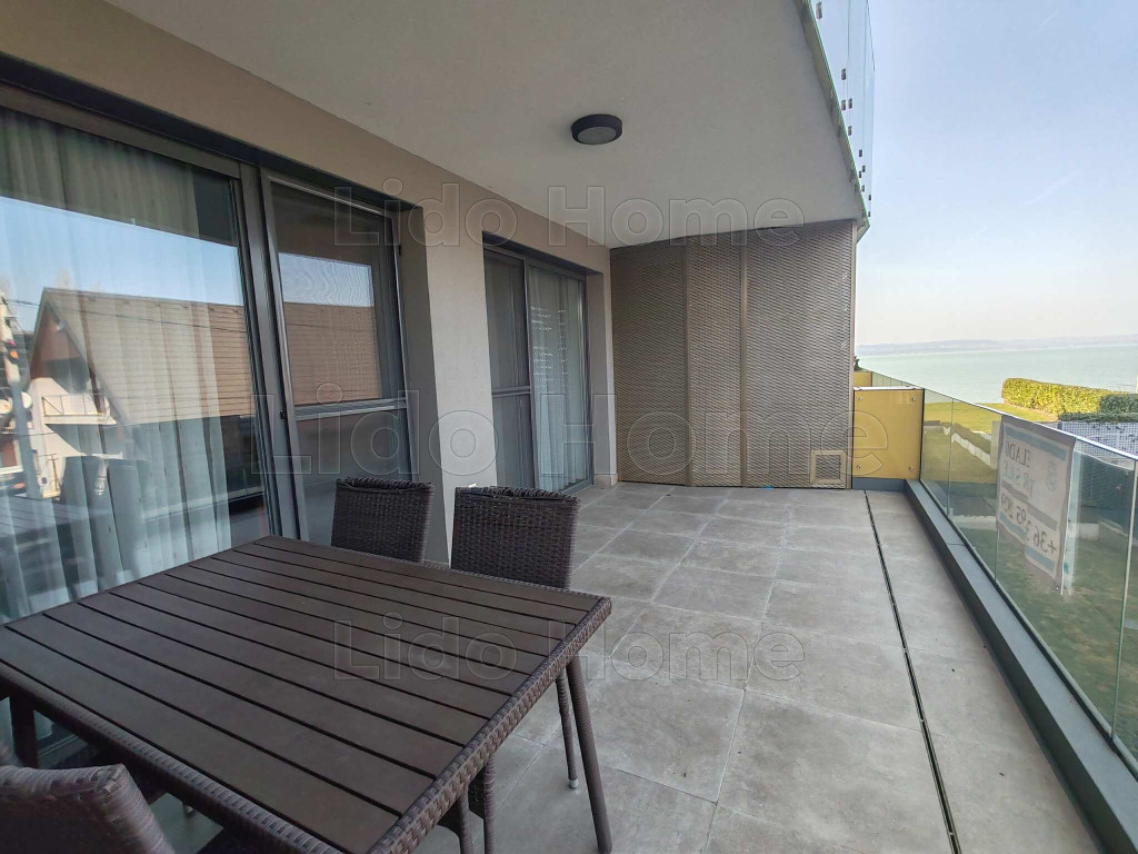 - A lakáshoz tartozó 17 m²-es teraszról lenyűgöző balatoni panoráma tárul elénk.