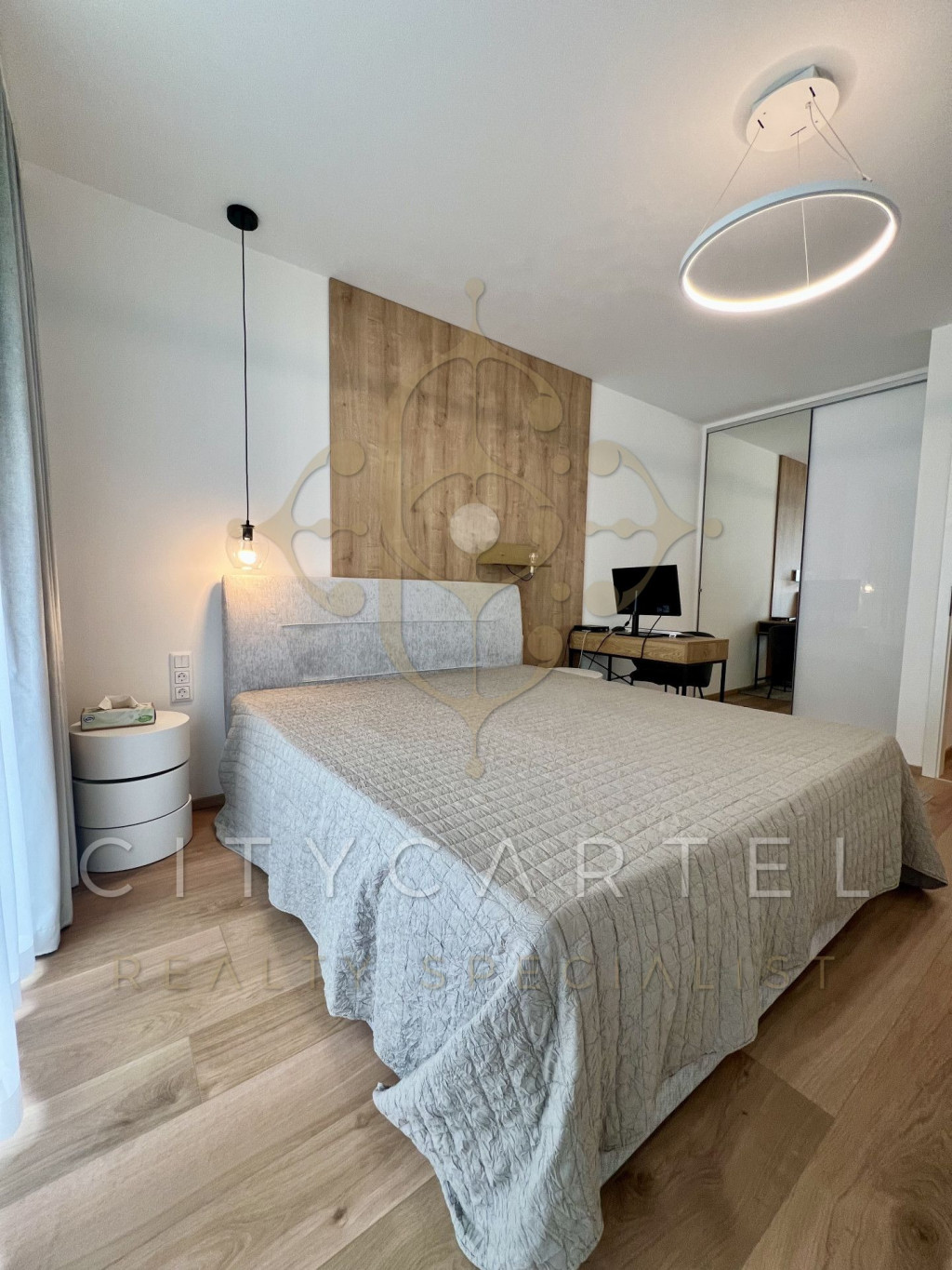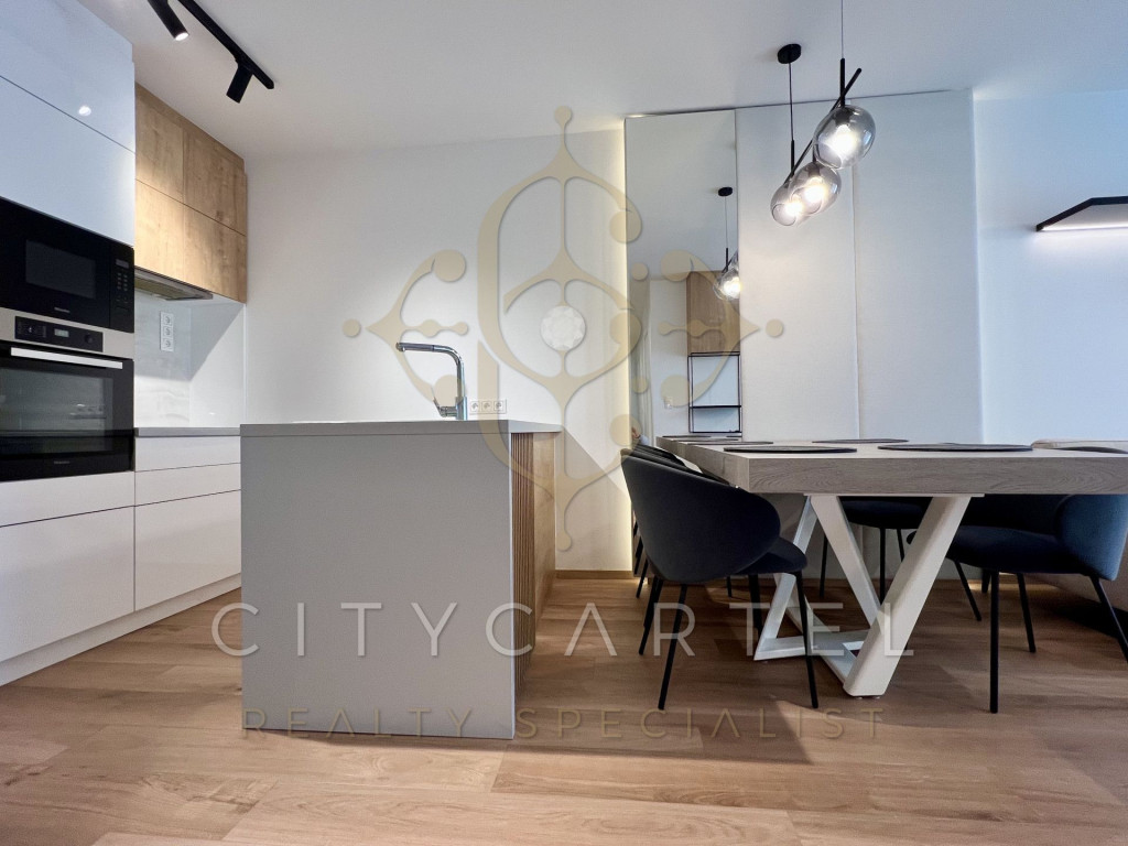 Az ingatlan minőségi és egyedi olasz bútorokkal, Miele beépített konyhagépekkel felszerelt.