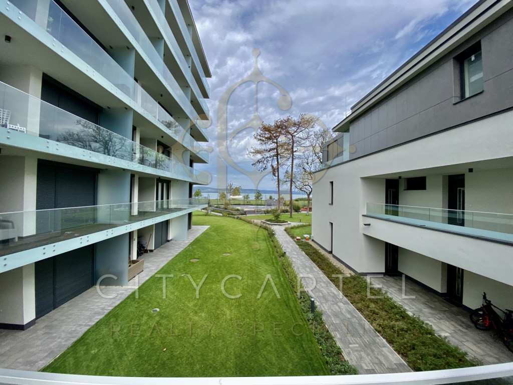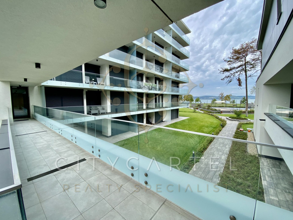 A CITY CARTEL INGATLANIRODA eladásra kínál Balatonlellén, közvetlenül a szabadstrandhoz kapcsolódó, új építésű társasházban található, 1. emeleti, teljesen berendezett, 72 m2 lakóterületű, 1+2 szobás, balatoni panorámás téglalakást.