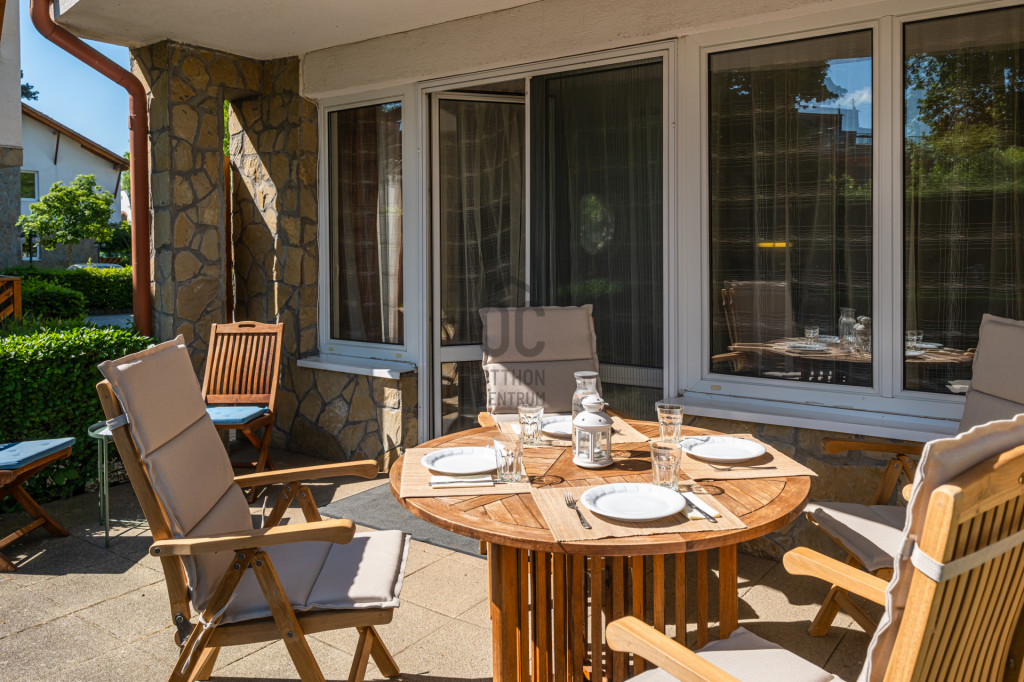 A 124 nm-es, háromszintes lakás jól átgondolt elrendezésű, tágas terekkel rendelkezik. A kertkapcsolatos nappali, a három különálló szoba és a két fürdőszoba kényelmes életteret biztosít akár családok számára is. A közel 30 nm-es, részben fedett terasz ideális helyszín a pihenéshez, ahol élvezheti a környezet nyugalmát és a víz közelségét.