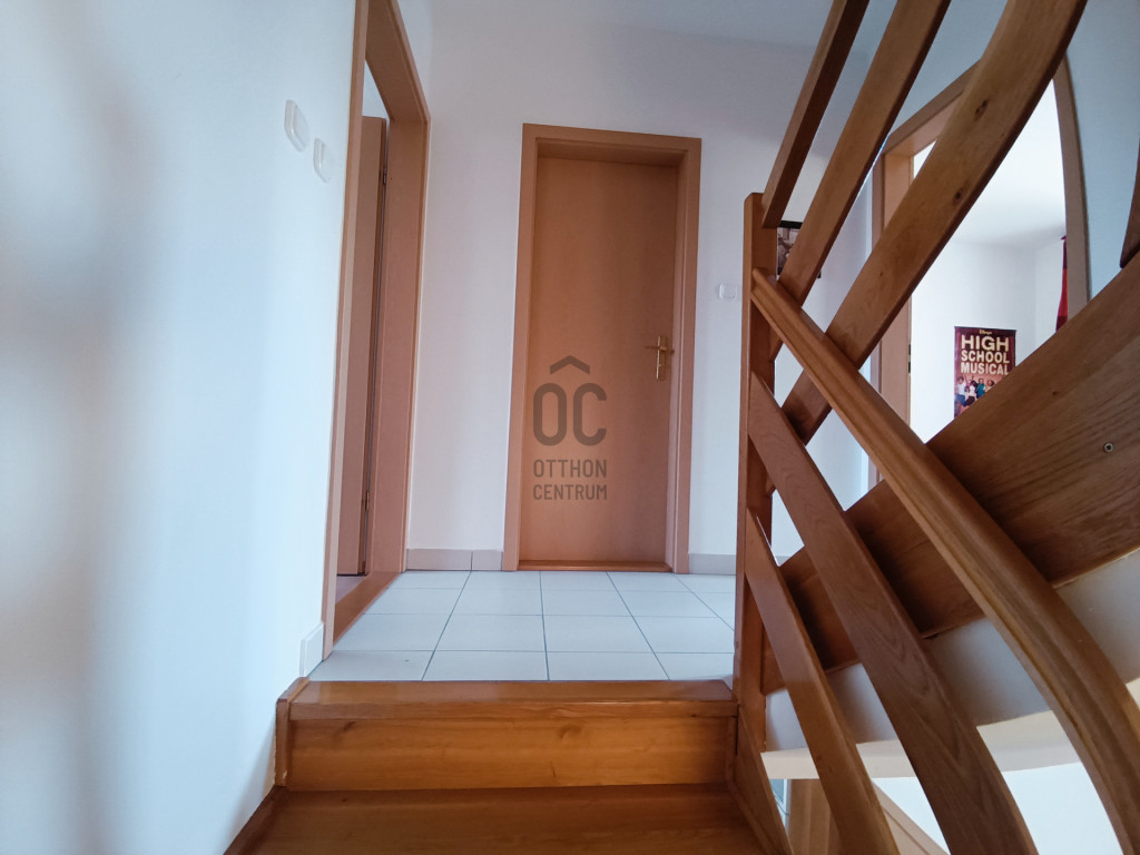 - földszint: nappali/étkező kertkapcsolattal, gépesített konyha, fürdőszoba/WC, háztartási helyiség, előtér, lépcsőház