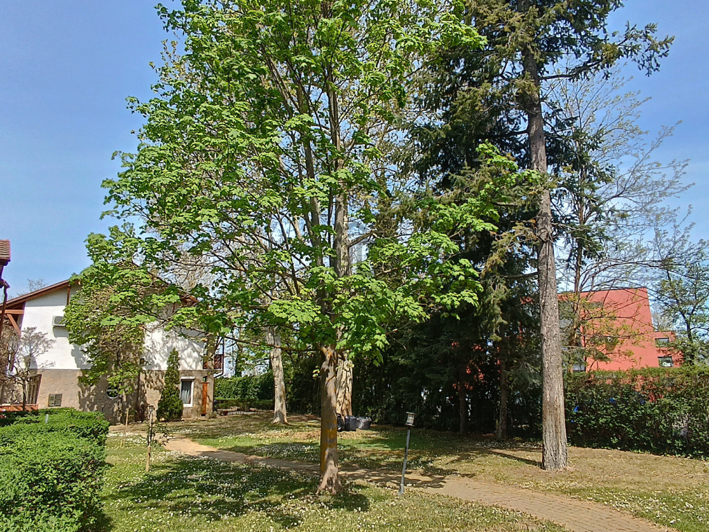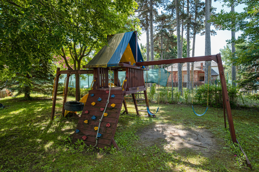 Az ingatlan egy gondozott, parkosított, 3.340 nm-es kertben található, amely nyugodt, zöld környezetet biztosít. A fűthető medence, a zárt udvar és a rendezett közösségi terek hozzájárulnak a kényelmes mindennapokhoz.