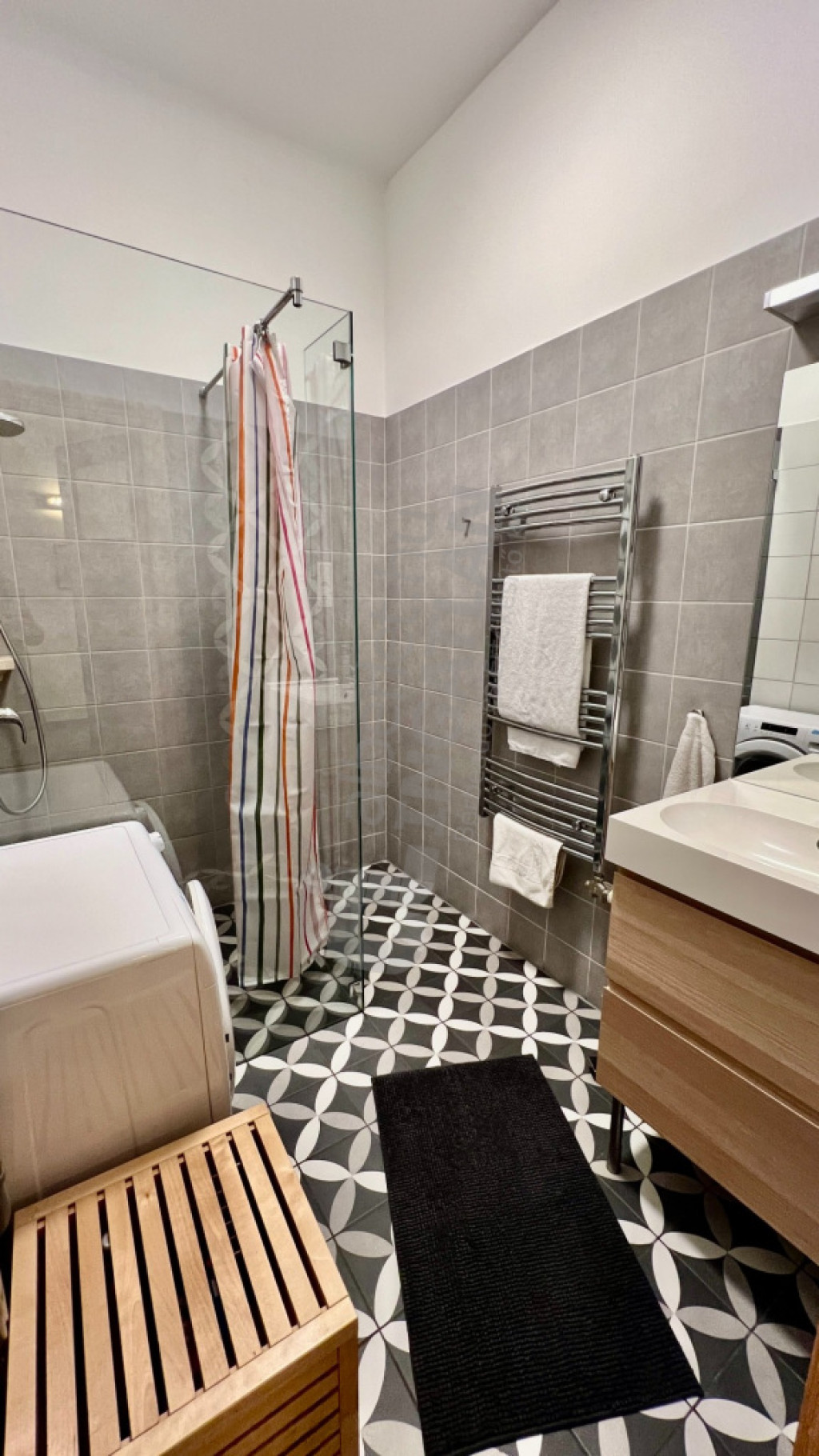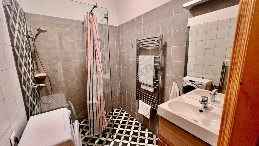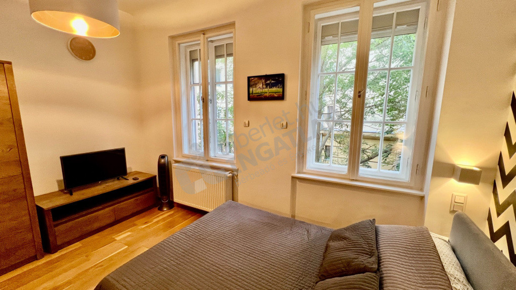 A lakás belmagassága három méter, két fürdőszobával rendelkezik, melyből az egyik közvetlenül a hálószobából nyílik. Az ingatlan teljes körűen felújított: 2020-ban új nyílászárók, hangszigetelés, fűtésrendszer, vezetékek és tölgyfa padló került beépítésre. Az ablakok nagy méretűek, redőnyözöttek, ennek köszönhetően a lakás világos, de nyári hónapokban is kellemes hőmérsékletű.