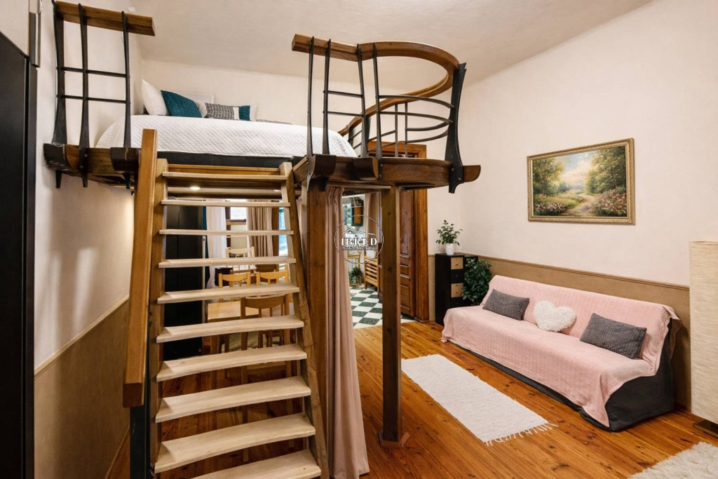 A társasház rendezett, rendszeresen karbantartott, kellemes hangulatú belső udvarral és klasszikus, körfolyosós elrendezéssel rendelkezik. A lakás egy felújított, nagy belmagasságú (3,6 m) ingatlan, amely 47 négyzetméteres alapterülete mellett további kb. 10 négyzetméternyi hasznos galériatérrel is rendelkezik, így a térérzet és a funkcionalitás egyszerre érvényesül.