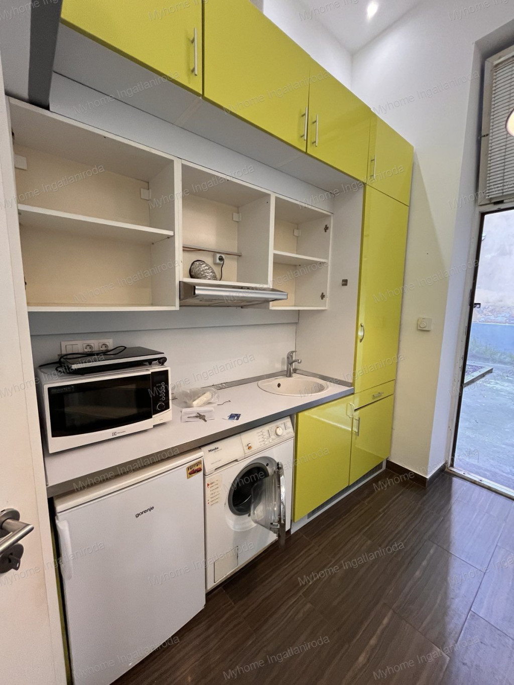 -A beépített konyha minden alapvető géppel felszerelt, beleértve a főzőlapot, mikrohullámú sütőt és mosógépet is. A vidám, élénk színű konyhabútor egyedi karaktert ad a térnek.