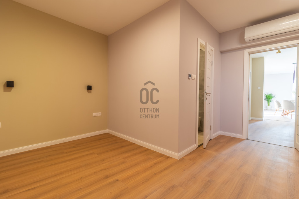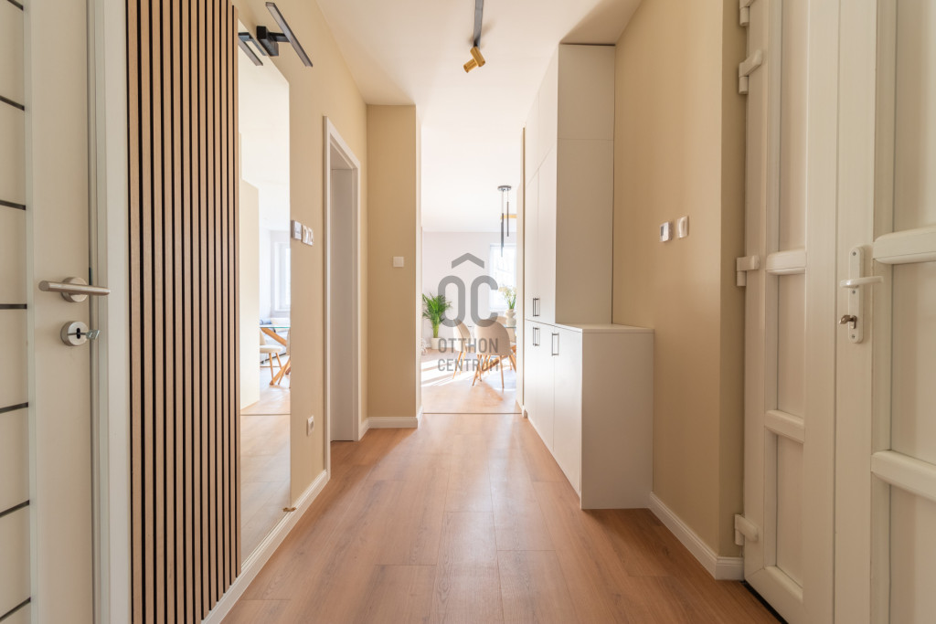 A folyamatosan karbantartott polgári házban lévő ingatlanban új elektromos- és vízvezetékek, háromrétegű nyílászárók,elektromos padlófűtés és Okosotthon rendszer biztosítják a kényelmet. A belsőépítész által megálmodott dizájn, az egyedi gépesített konyha, valamint az igény szerint elérhető bútorzat modern, stílusos életteret kínál.