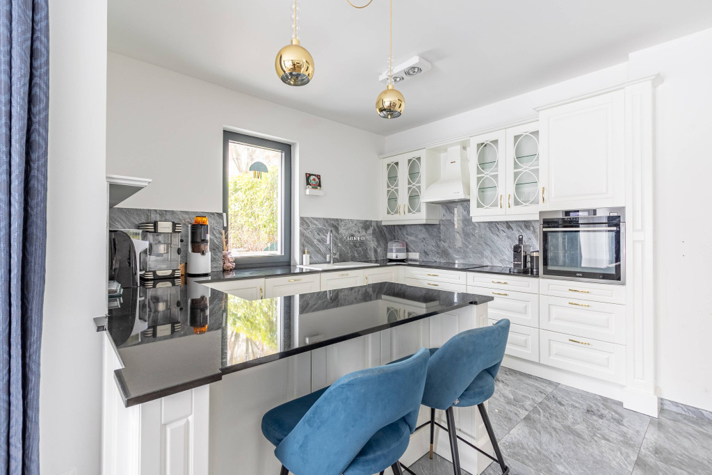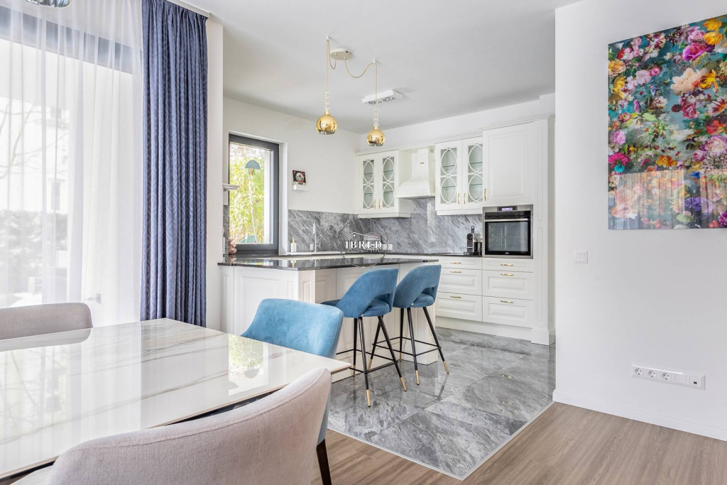 Elrendezése ideális család számára: a közösségi térben tágas (44 nm-es), nappali–étkező, a részben szeparált, világos, ablakos, étkező pulttal épített konyhával, gránit munkalappal, klasszikus fehér frontokkal és teljes körű gépesítéssel, kényelmesen használható toronyba épített sütővel.