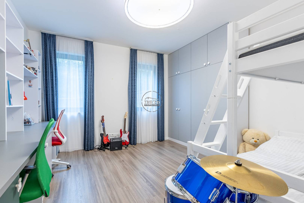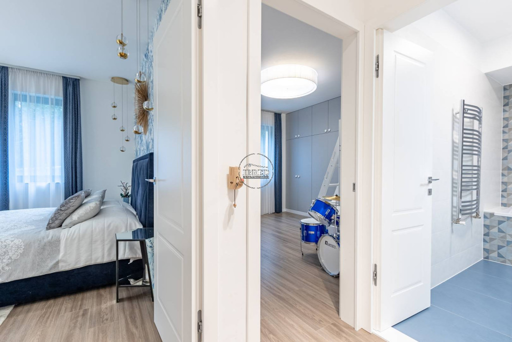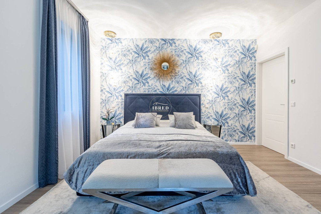 A közlekedőből nyílik további egy hálószoba, és egy kádas fürdőszoba, valamint a szülői apartman - ami egy egyedi megjelenésű -, üvegfallal leválasztott látványfürdővel, design térkáddal, dupla mosdóval, illetve járható gardróbbal is rendelkezik.