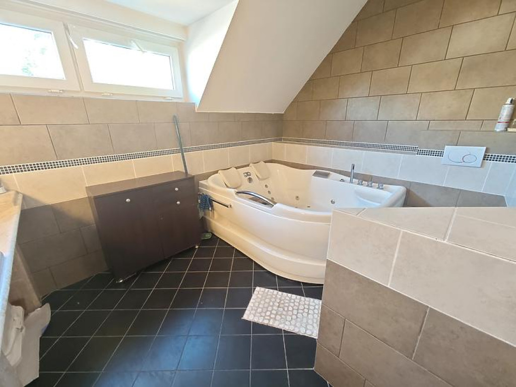 Az emeleten egy nagy szülői háló kapott helyett (ez régen 2 külön szoba volt), egy gyerek háló/dolgozó és egy kényelmes fürdőszoba.